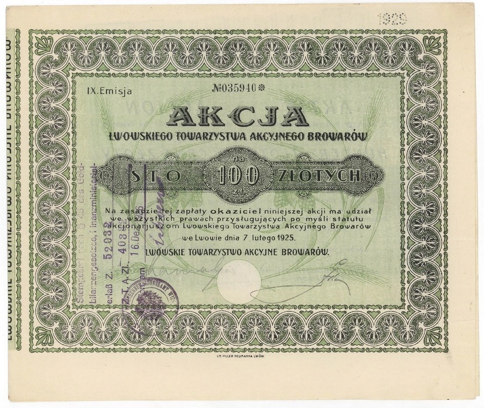 Zdjęcie akcji Lwowskie Towarzystwo Akcyjne Browarów - 1