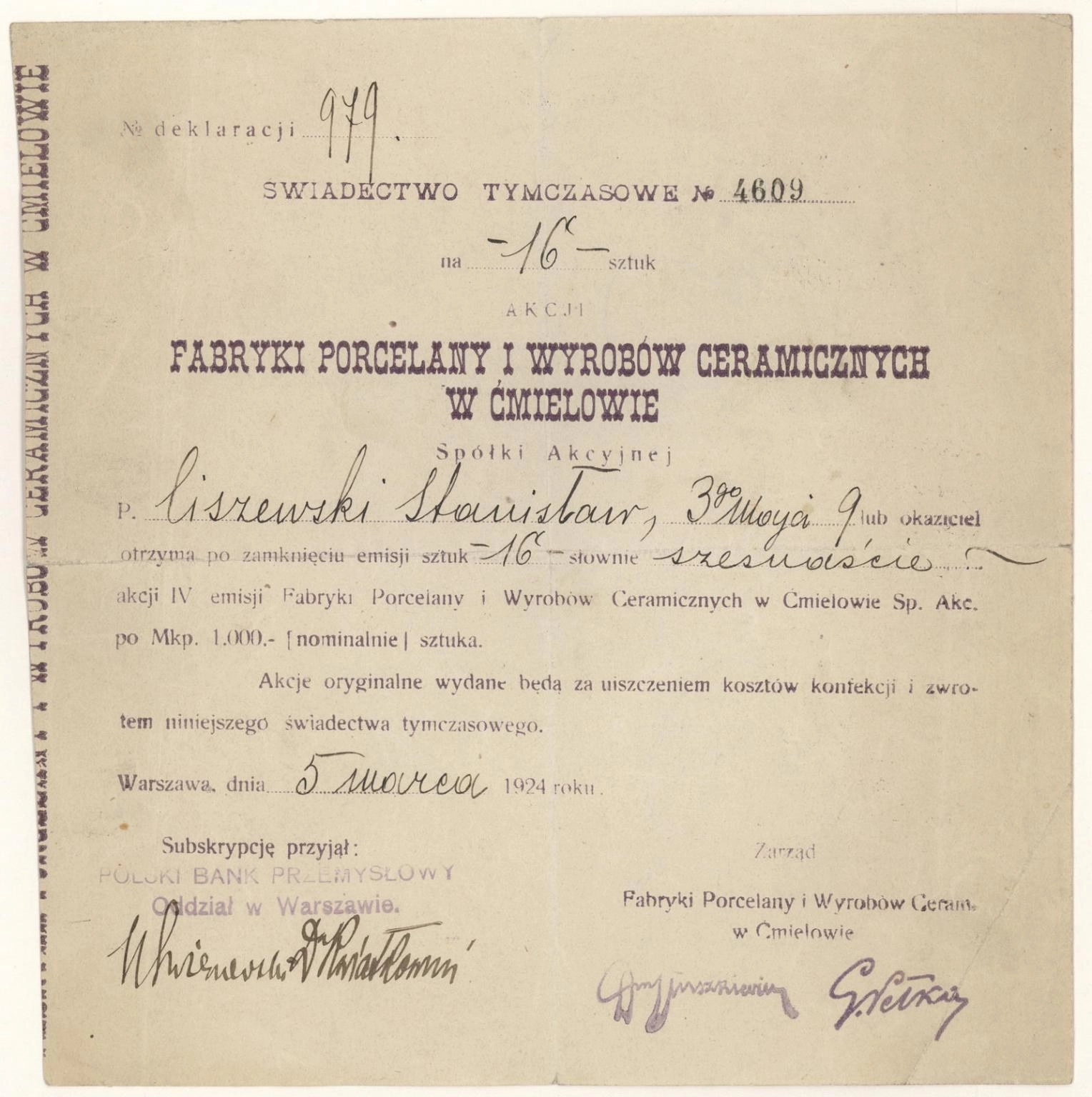 Świadectwo tymczasowe | Emisja IV | imienne