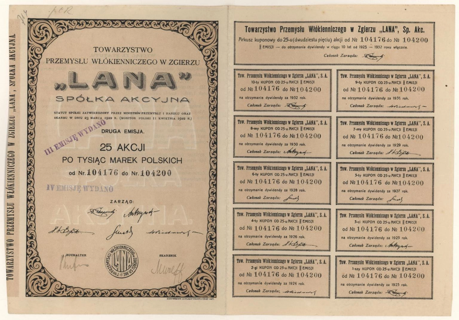 Towarzystwo Przemysłu Włókienniczego "Lana" Spółka Akcyjna w Zgierzu