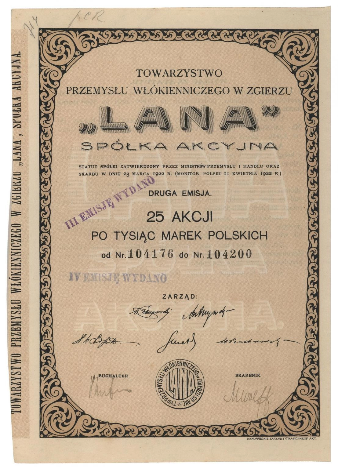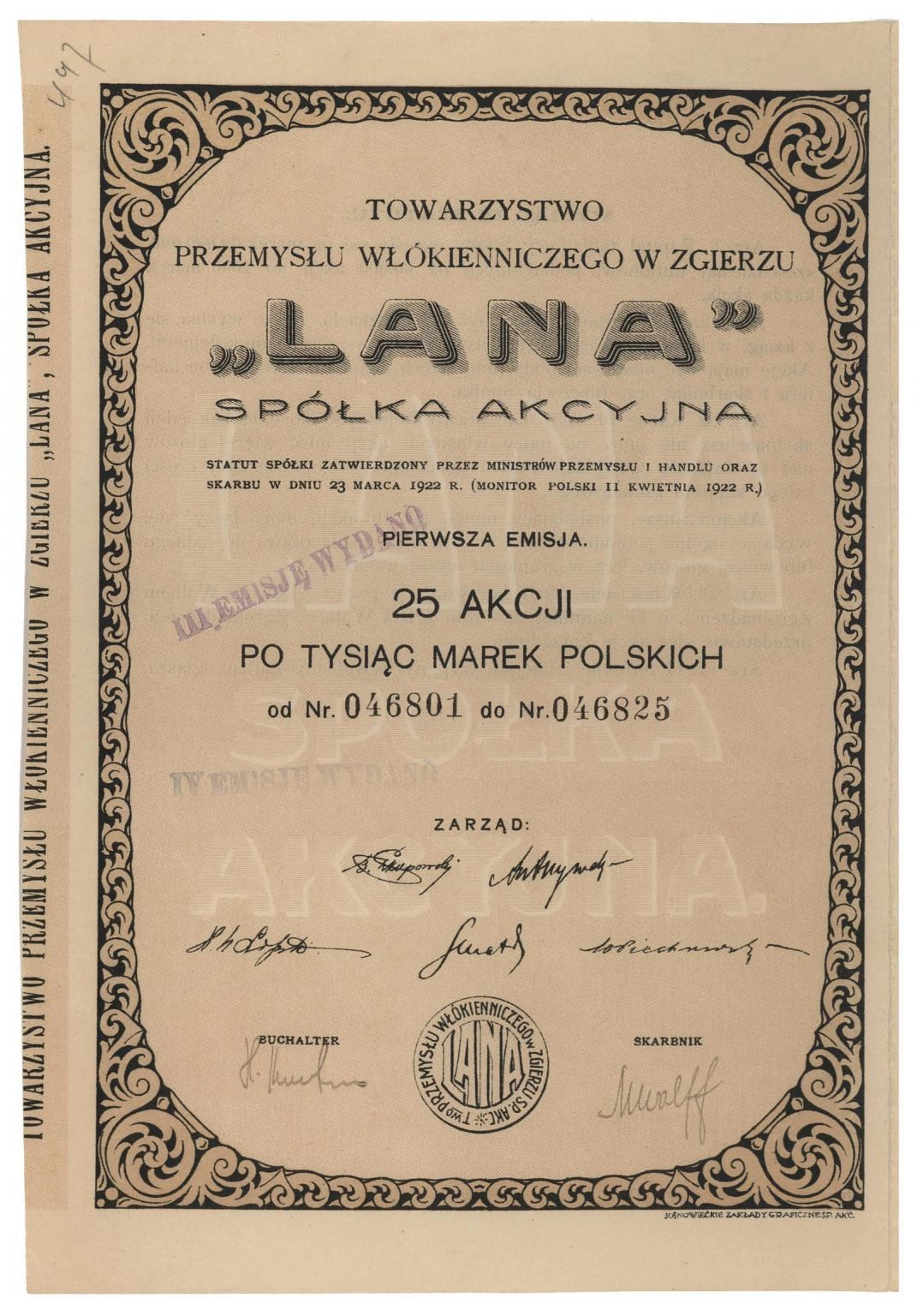 Towarzystwo Przemysłu Włókienniczego "Lana" Spółka Akcyjna w Zgierzu