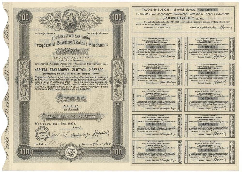Towarzystwo Zakładów Przędzalni Bawełny, Tkalni i Blecharni "Zawiercie" Spółka Akcyjna