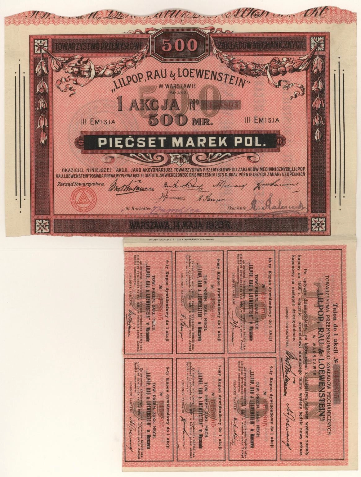 Towarzystwo Przemysłowe Zakładów Mechanicznych "Lilpop, Rau i Loewenstein" w Warszawie Spółka Akcyjna