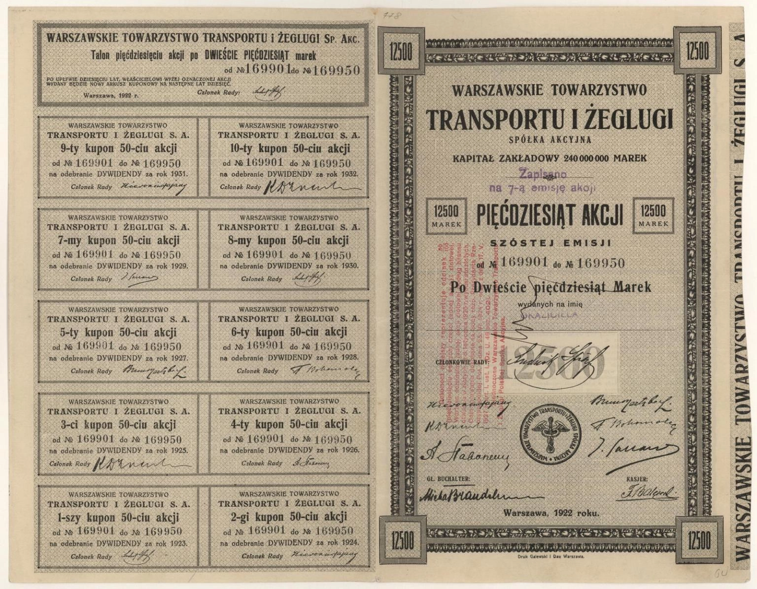 Akcja | Emisja VII | imienna - wystawiona na okaziciela