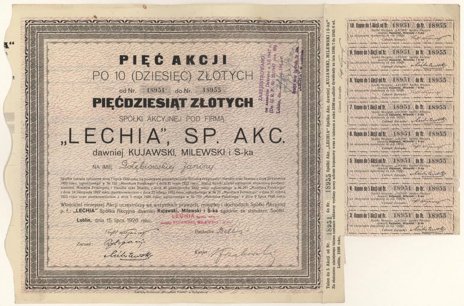 "Lechia" dawniej "Kujawski, Milewski i S-ka" Spółka Akcyjna