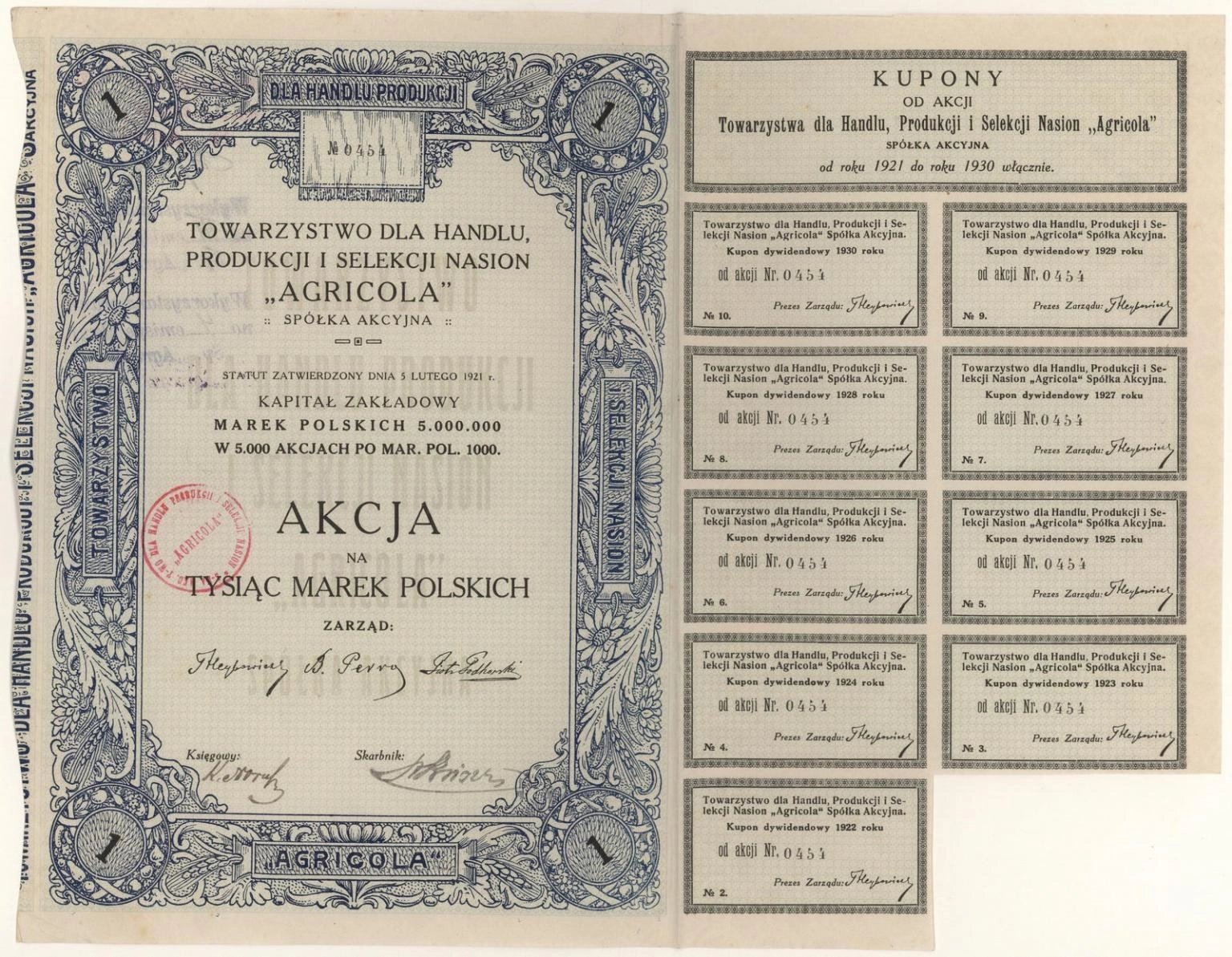 Towarzystwo dla Handlu, Produkcji i Selekcji Nasion "Agricola" Spółka Akcyjna
