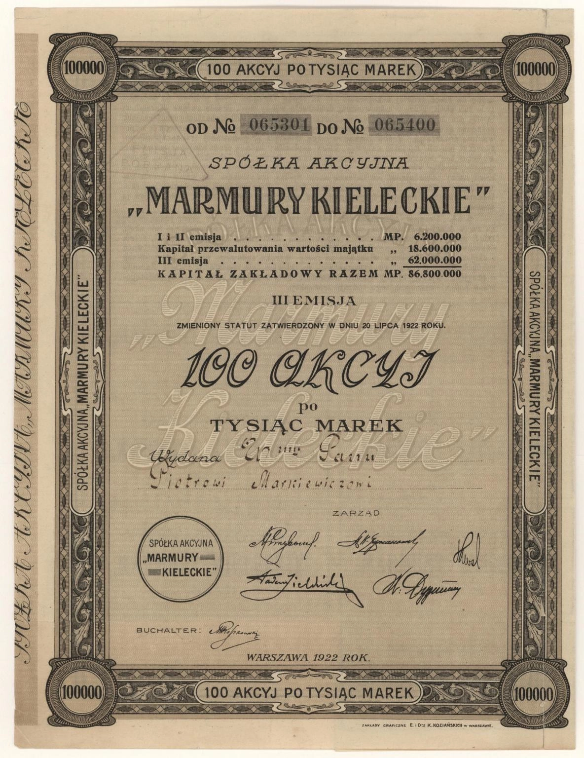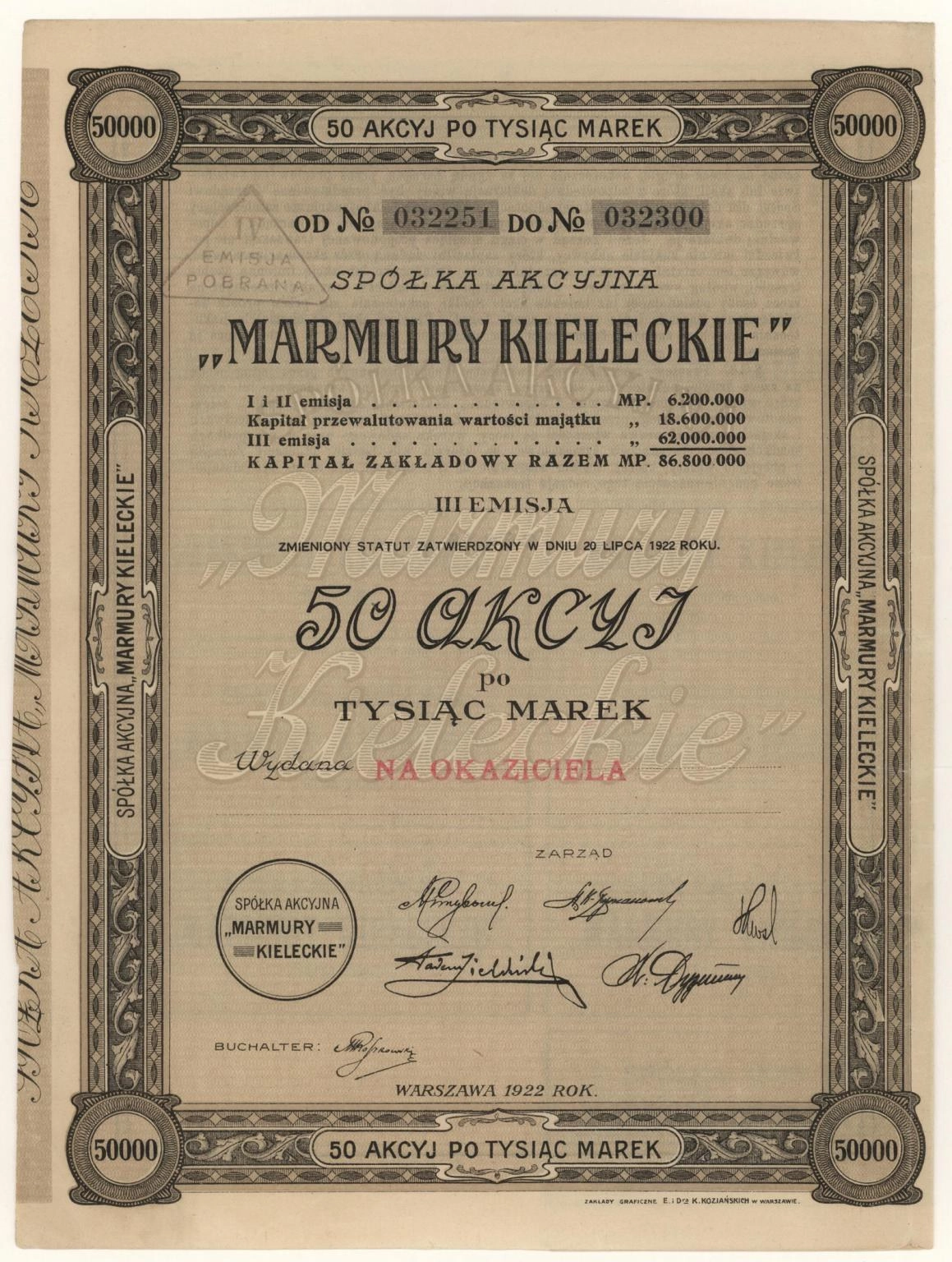 Akcja | Emisja III | imienna - wystawiona na okaziciela