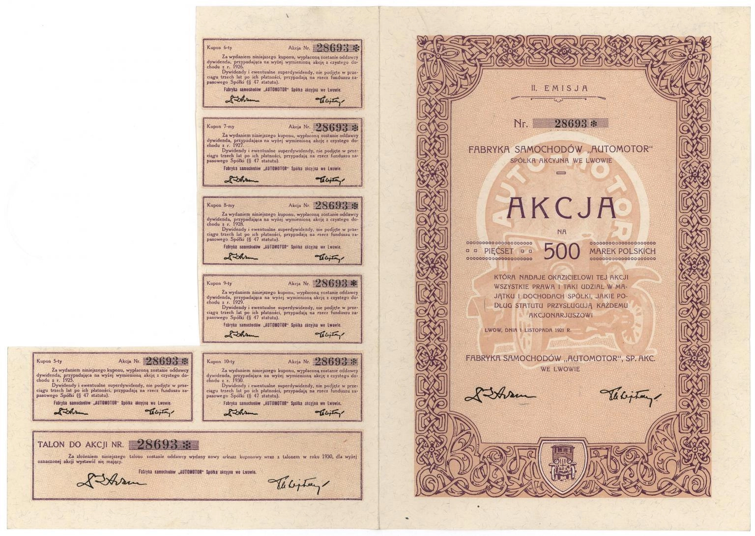 Zdjęcie akcji Fabryka Samochodów "Automotor" Spółka Akcyjna we Lwowie - 1