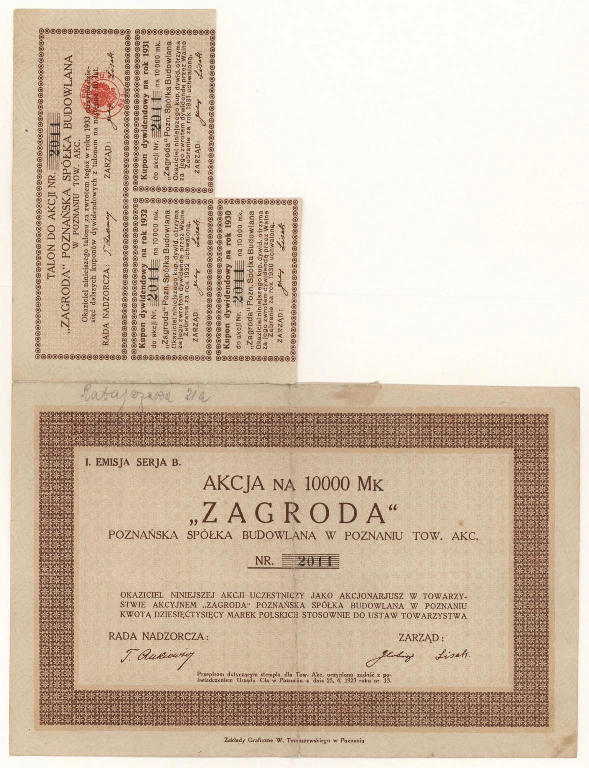 Zdjęcie akcji "Zagroda" Poznańska Spółka Budowlana w Poznaniu Towarzystwo Akcyjne - 1