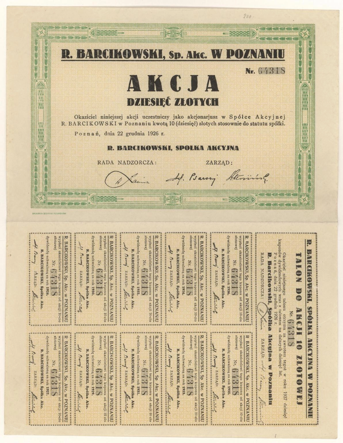 "R. Barcikowski" Spółka Akcyjna w Poznaniu