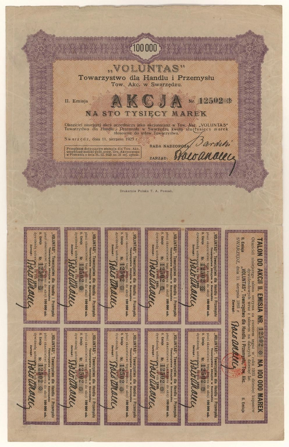 Zdjęcie akcji "Voluntas" Towarzystwo dla Handlu i Przemysłu Towarzystwo Akcyjne - 2