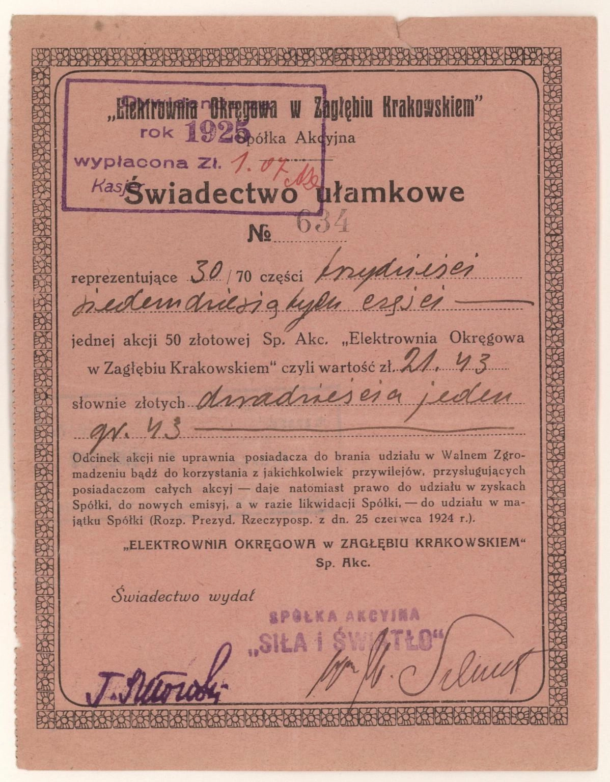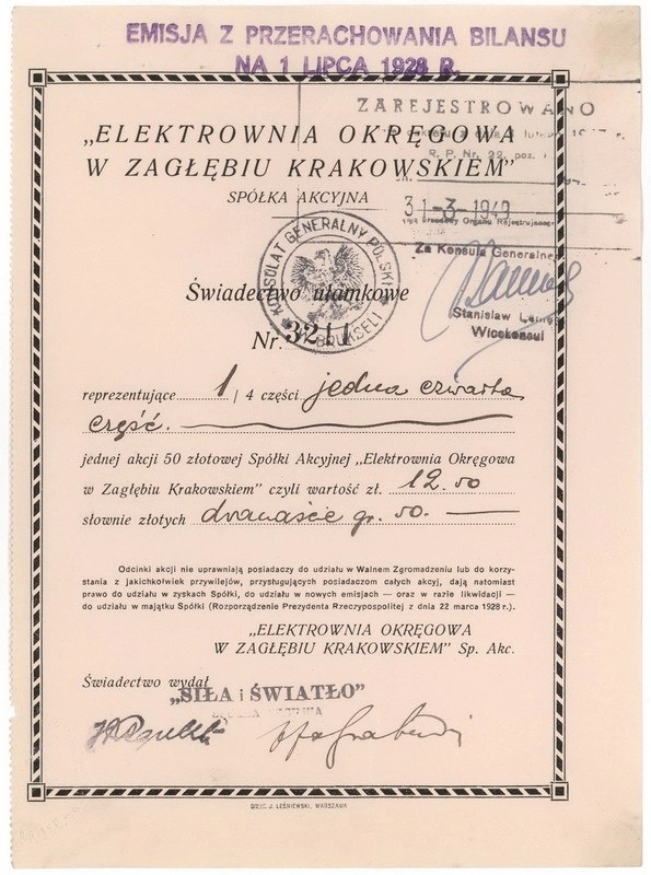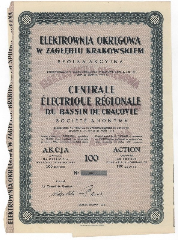 Elektrownia Okręgowa w Zagłębiu Krakowskim, Spółka Akcyjna