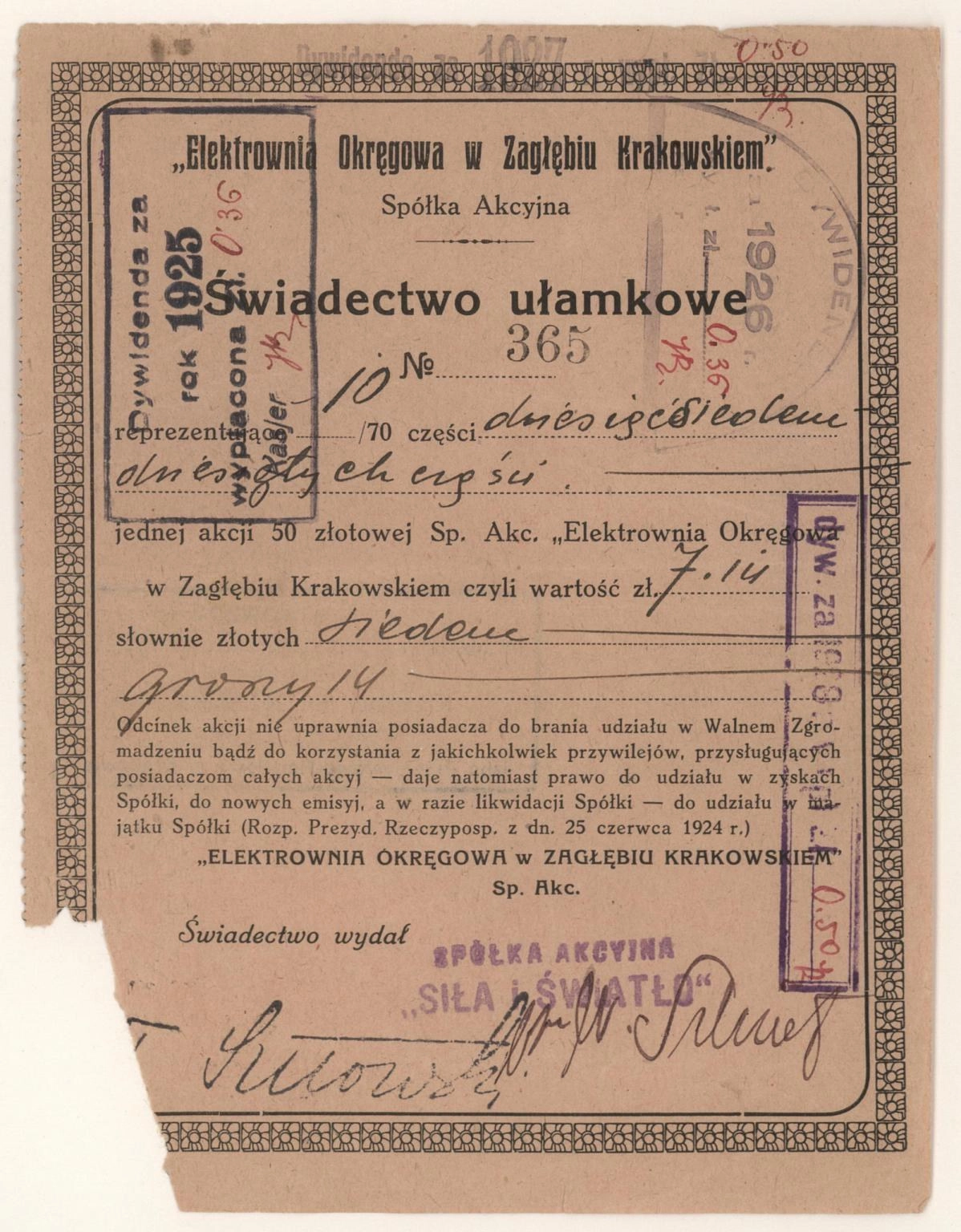 Świadectwo ułamkowe | na okaziciela