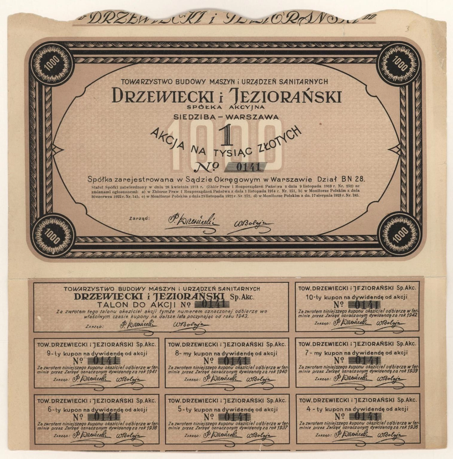 Zdjęcie akcji Towarzystwo Budowy Maszyn i Urządzeń Sanitarnych "Drzewiecki i Jeziorański" Spółka Akcyjna - 1