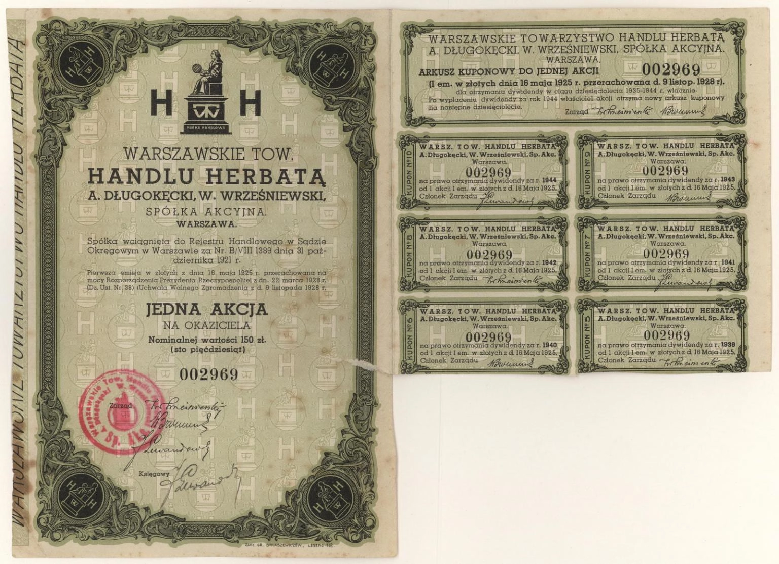 Zdjęcie akcji Warszawskie Towarzystwo Handlu Herbatą "A. Długołęcki, W. Wrześniewski" Spółka Akcyjna - 1