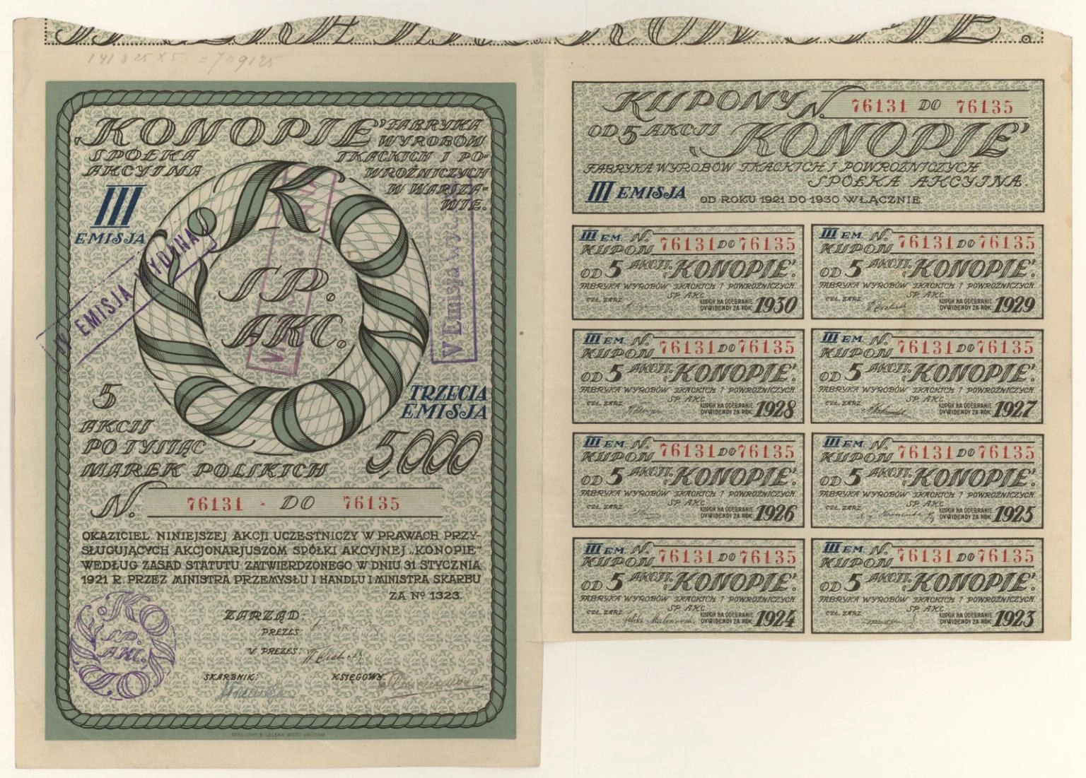 "Konopie" Fabryka Wyrobów Tkackich i Powroźniczych w Warszawie Spółka Akcyjna