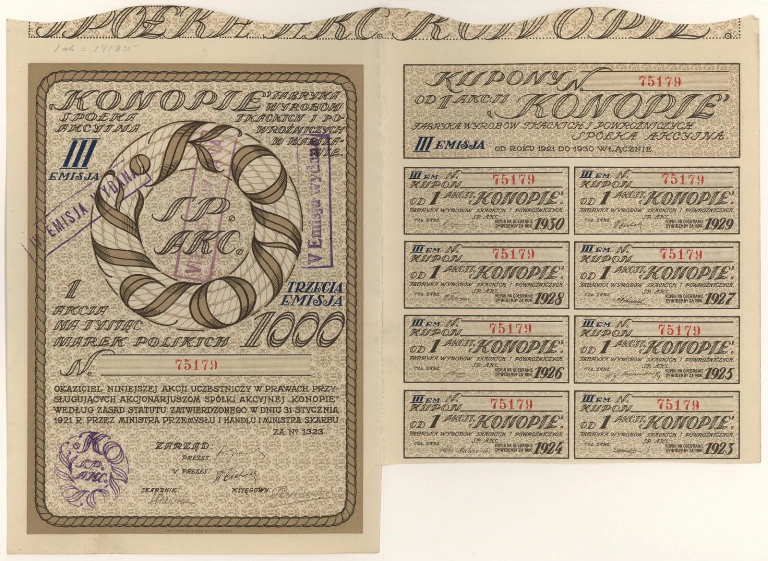 "Konopie" Fabryka Wyrobów Tkackich i Powroźniczych w Warszawie Spółka Akcyjna