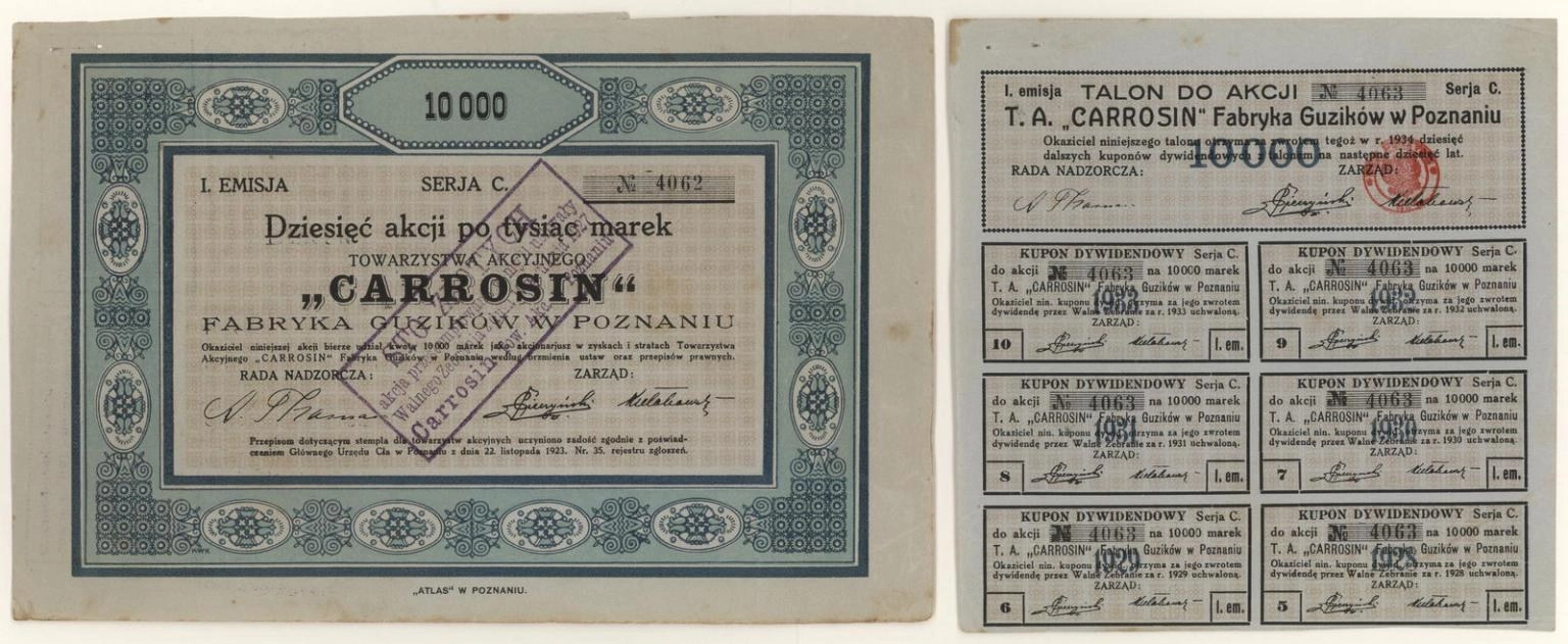 Zdjęcie akcji "Carrosin" Fabryka Guzików w Poznaniu Towarzystwo Akcyjne - 1