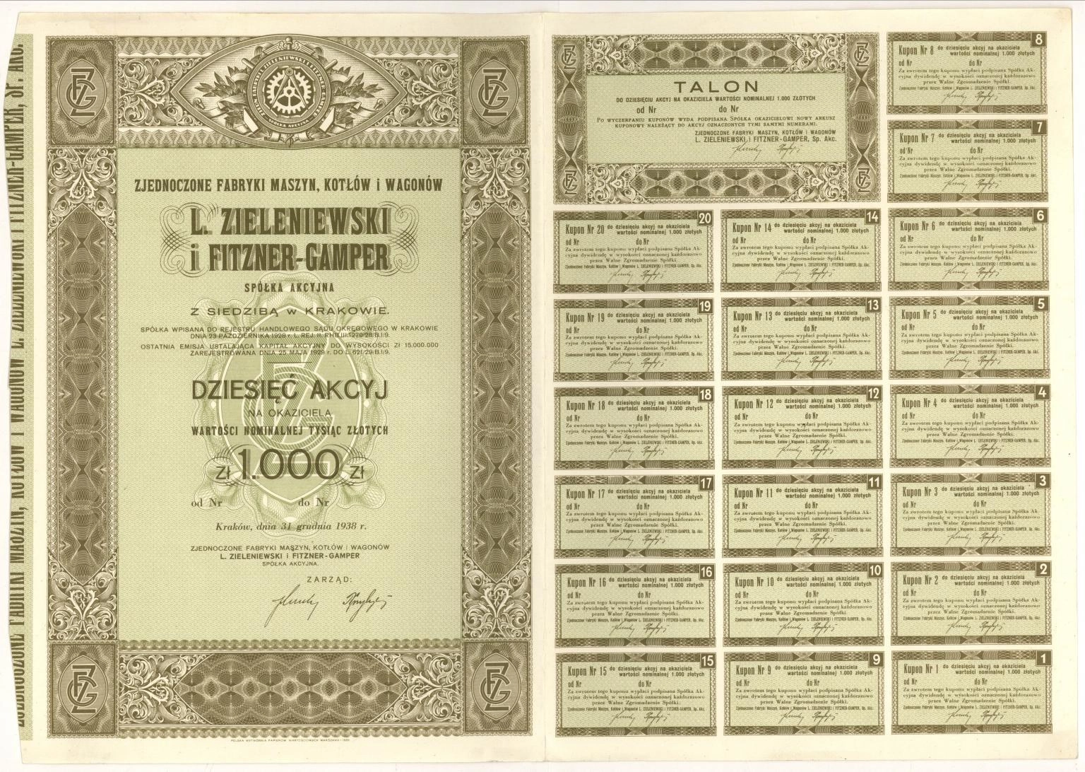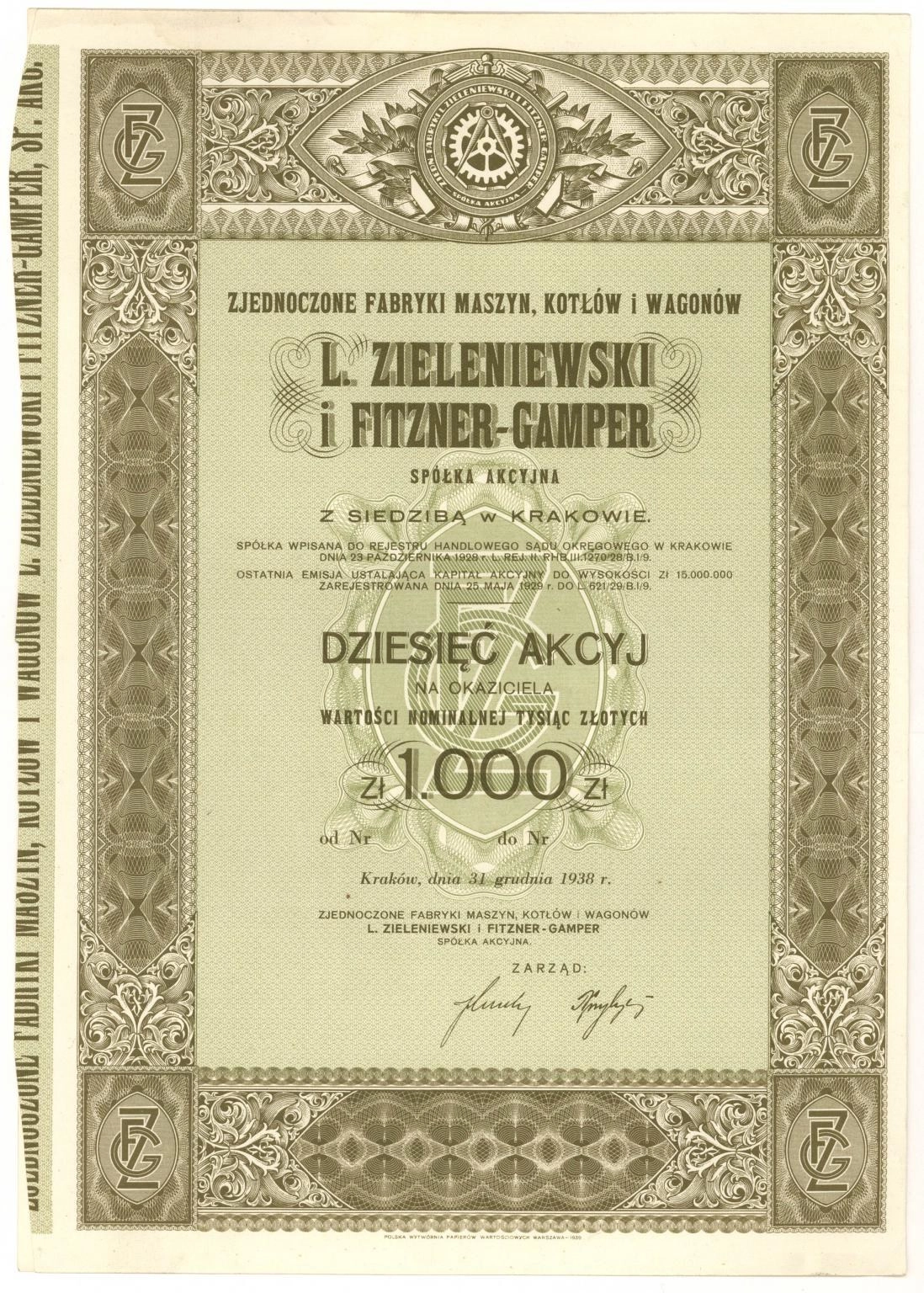 Zjednoczone Fabryki Maszyn, Kotłów i Wagonów "L. Zieleniewski i Fitzner-Gamper" Spółka Akcyjna