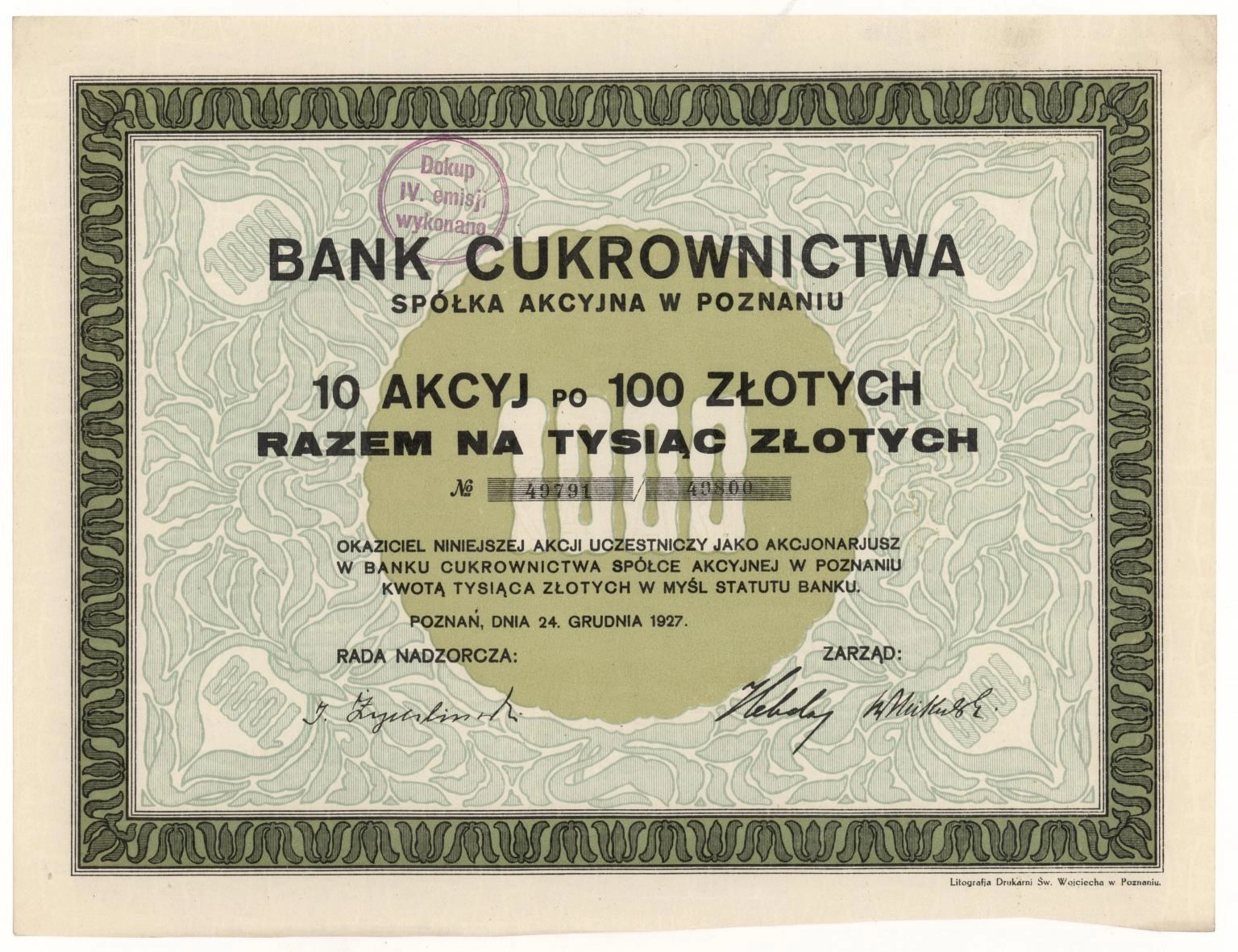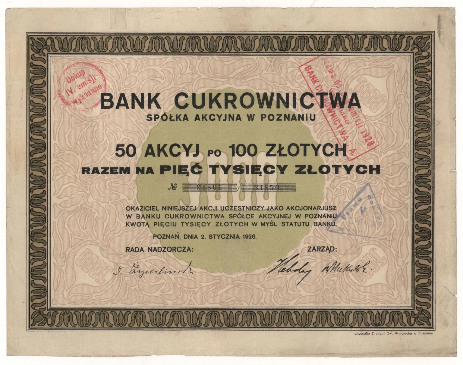 Bank Cukrownictwa Spółka Akcyjna w Poznaniu
