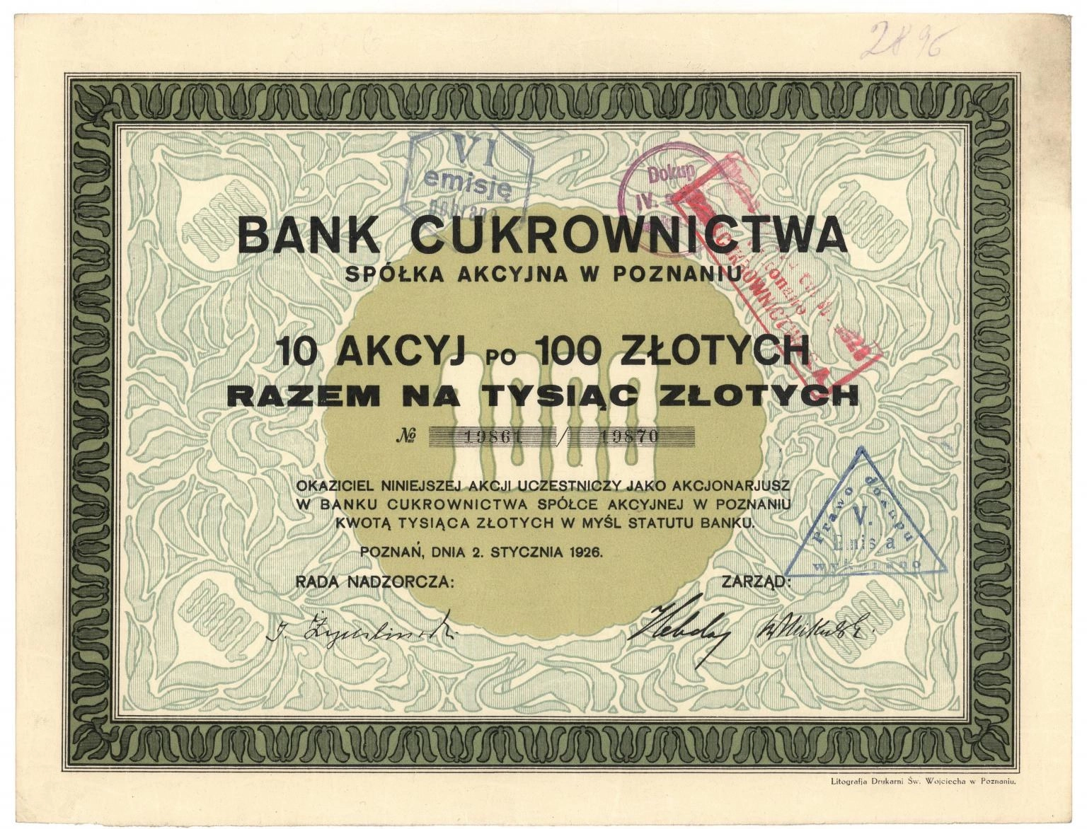 Akcja | Emisja VI | na okaziciela
