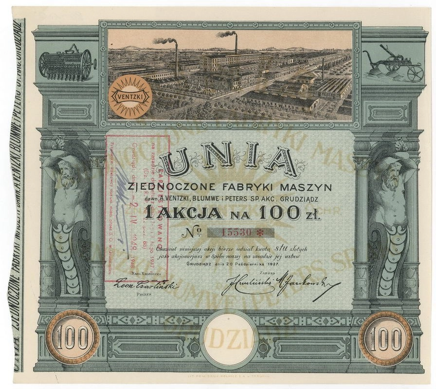 "Unia" Zjednoczone Fabryki Maszyn dawniej A. Ventzki, Blumwe i Peters Spółka Akcyjna w Grudziądzu