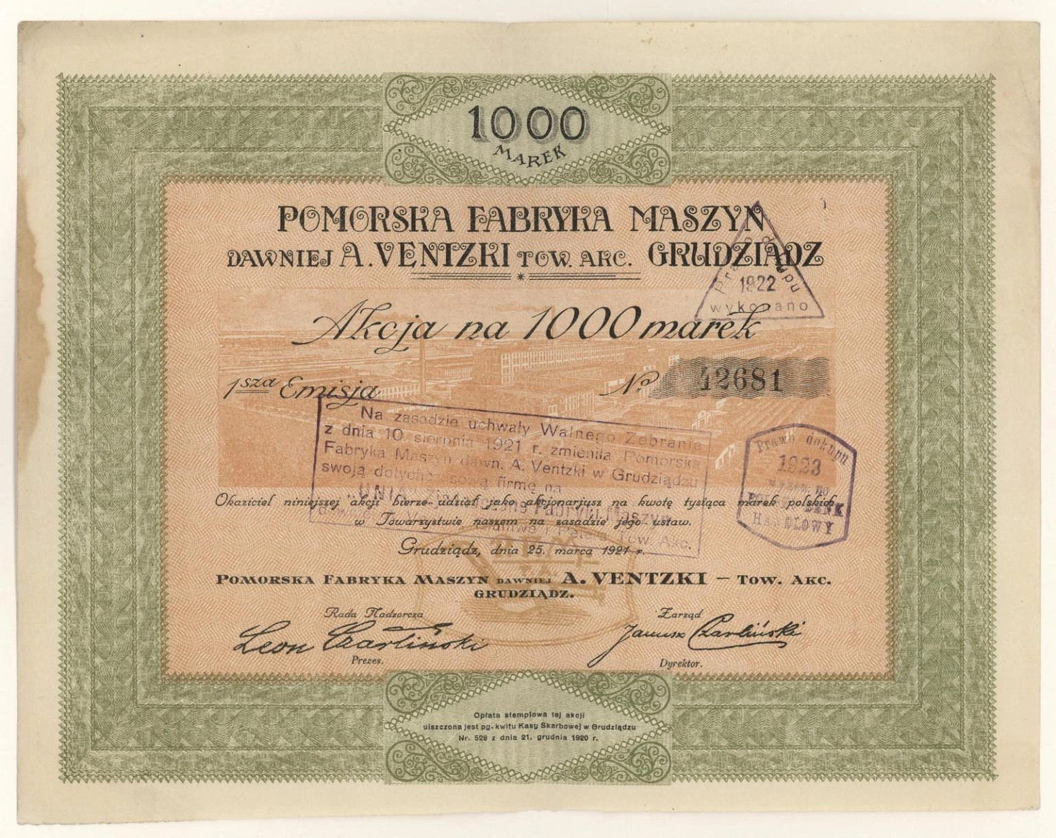 Pomorska Fabryka Maszyn dawniej A. Ventzki Towarzystwo Akcyjne w Grudziądzu