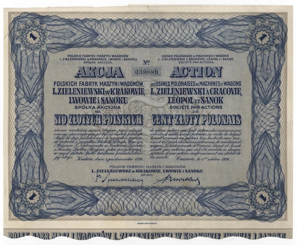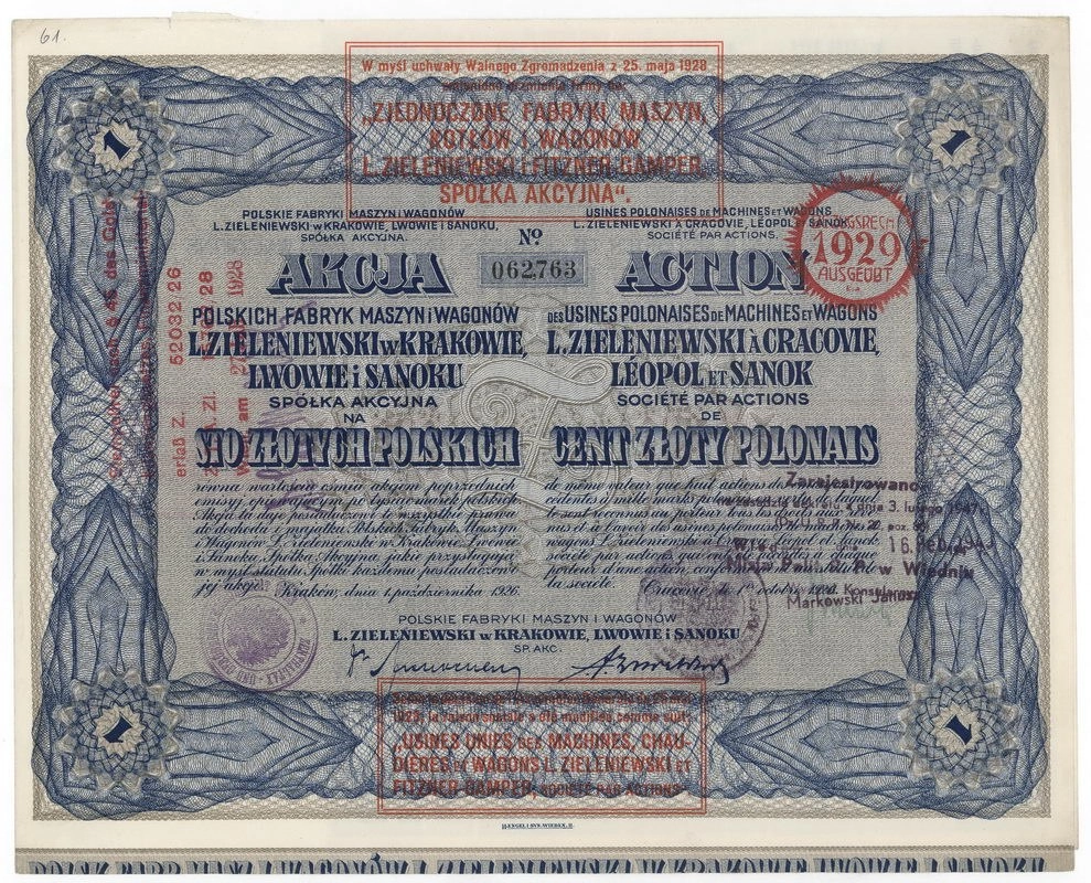 Polskie Fabryki Maszyn i Wagonów "L. Zieleniewski" w Krakowie, Lwowie i Sanoku, Spółka Akcyjna