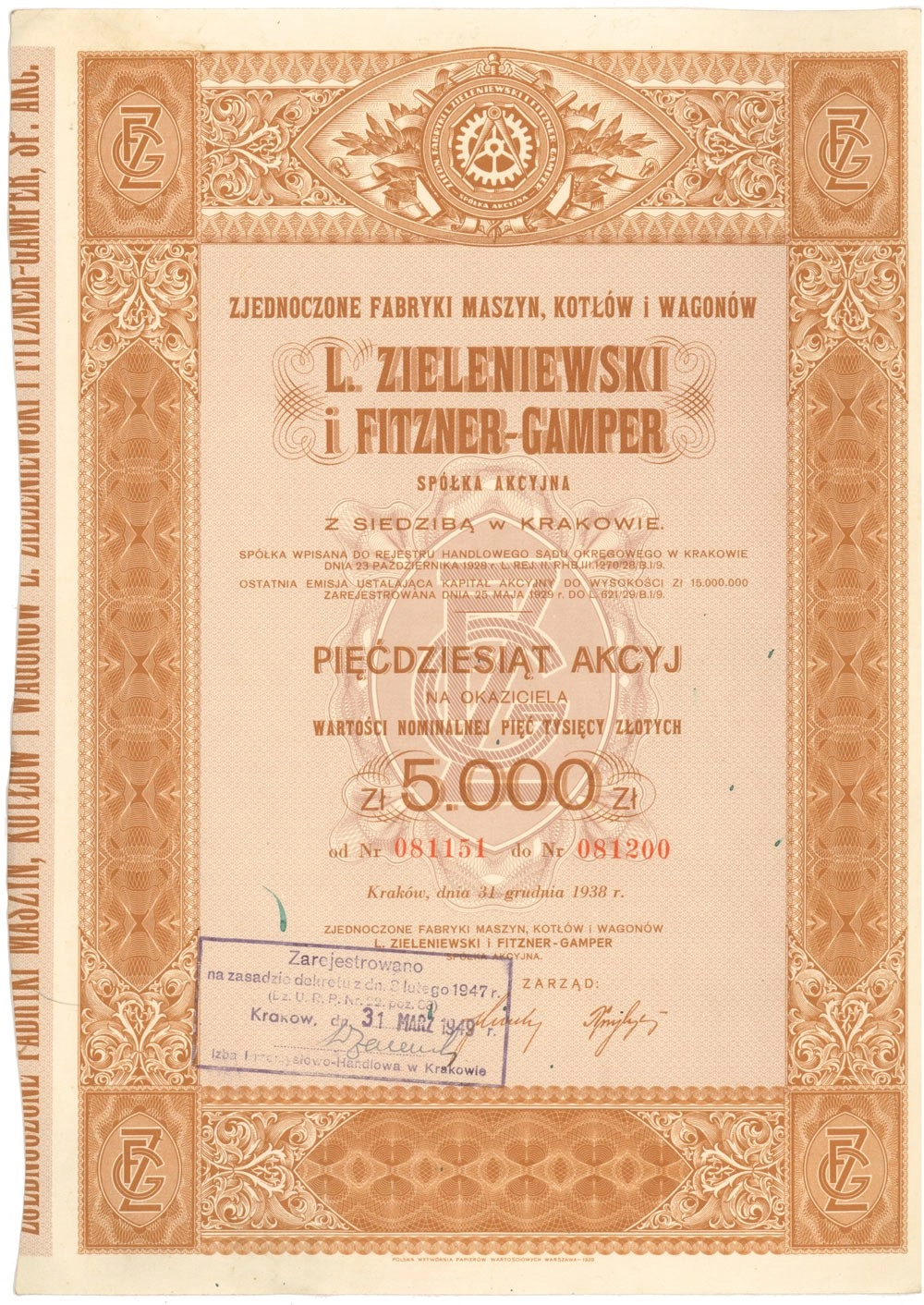 Zjednoczone Fabryki Maszyn, Kotłów i Wagonów "L. Zieleniewski i Fitzner-Gamper" Spółka Akcyjna