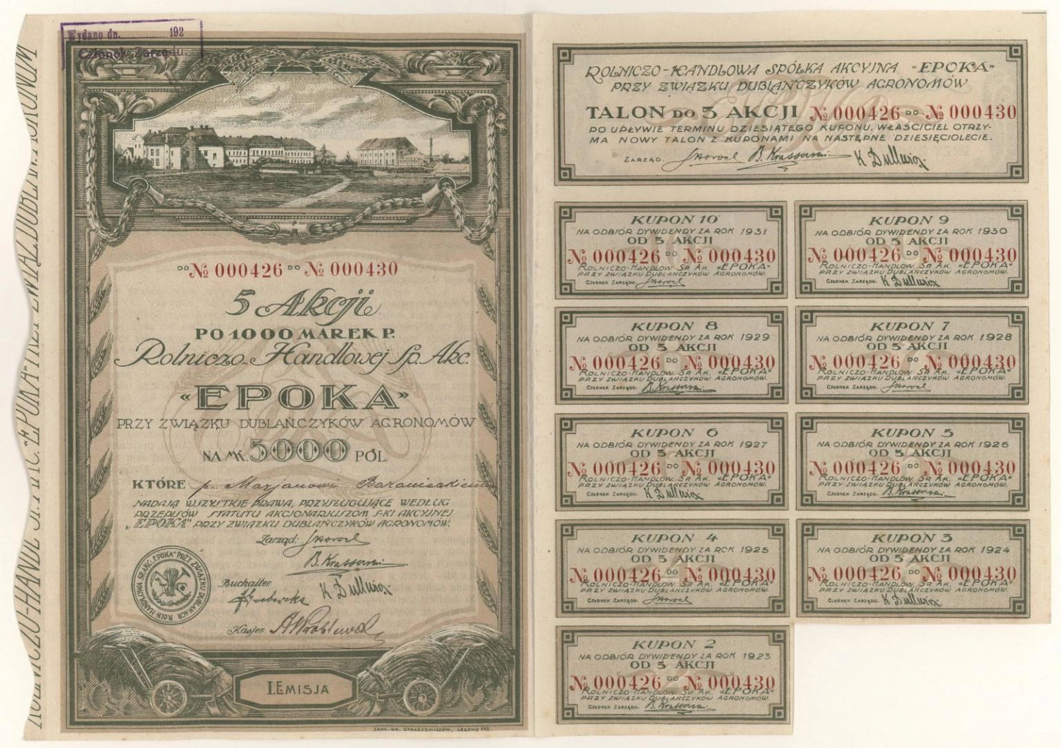 Akcja | Emisja I | imienna - wystawiona na okaziciela
