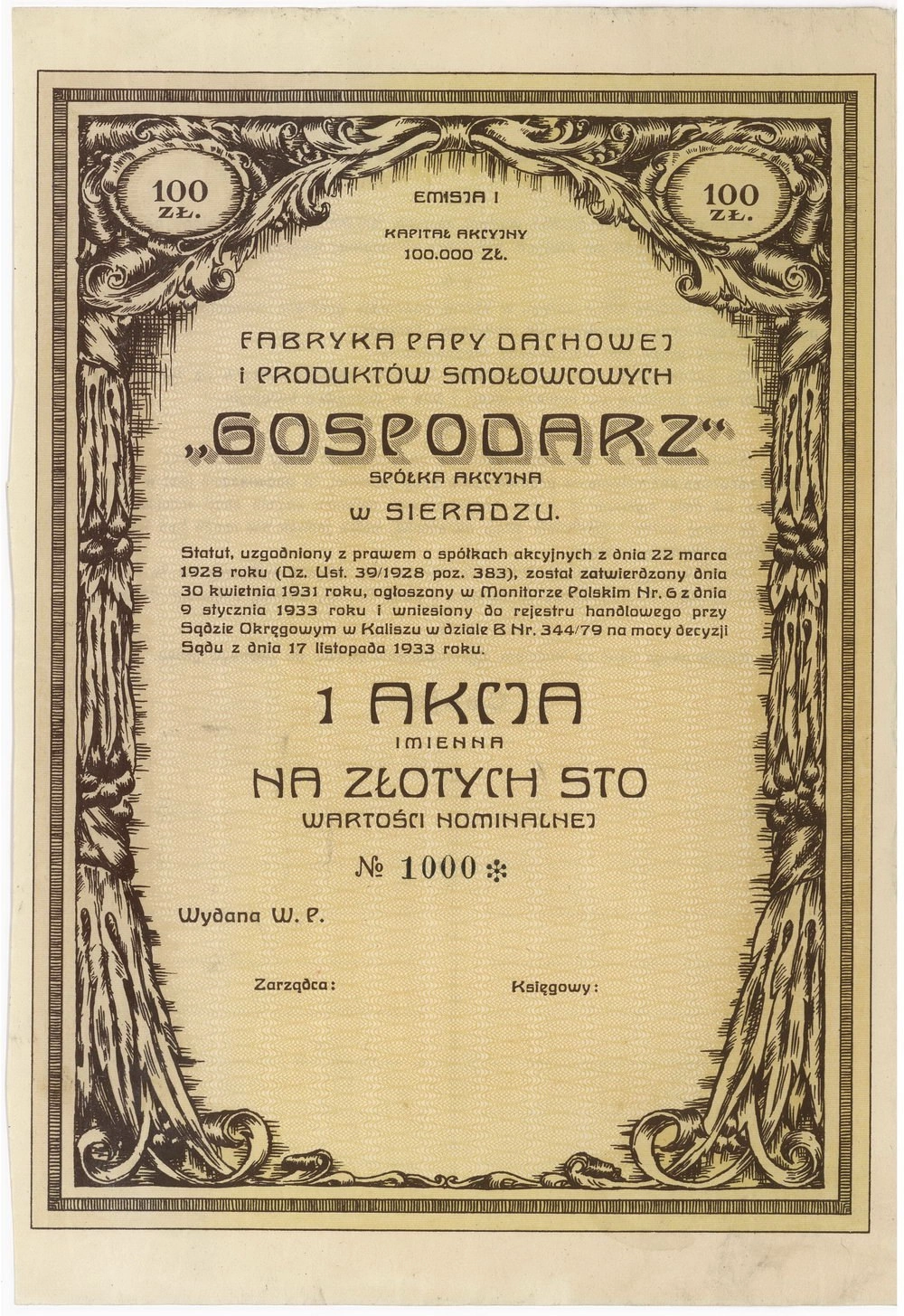 Akcja | Emisja I | imienna