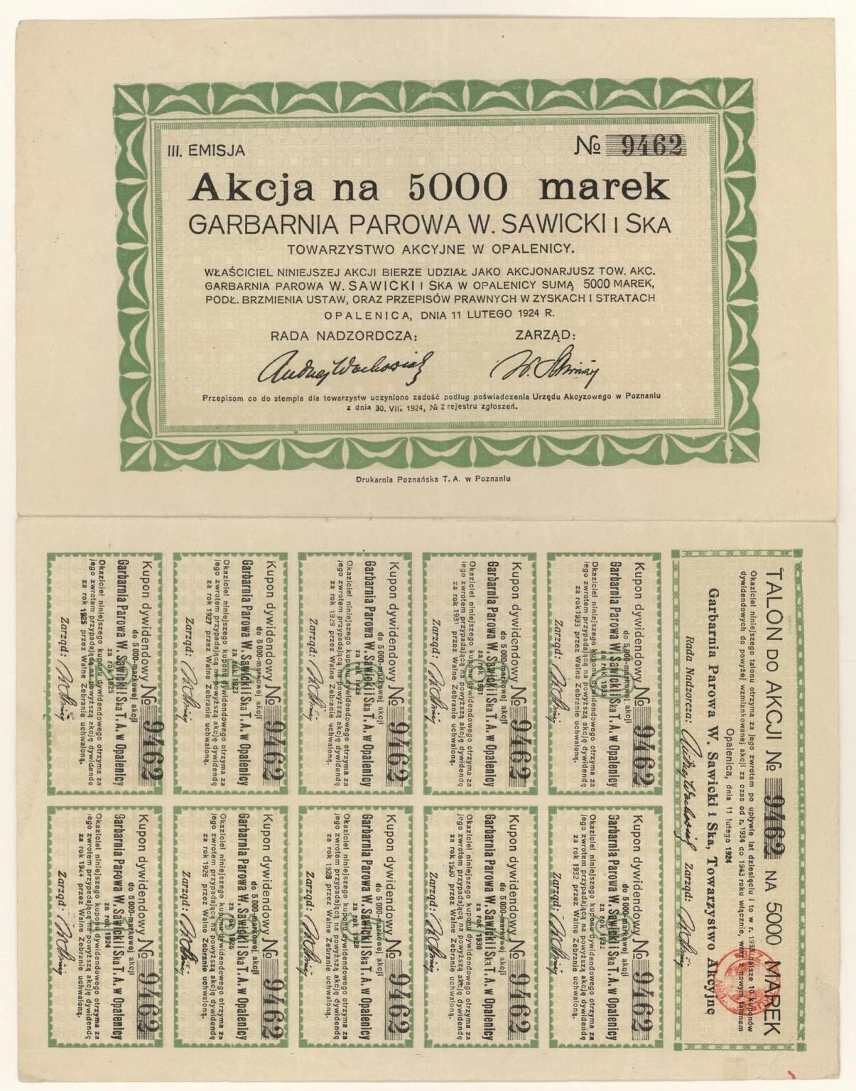Garbarnia Parowa "W. Sawicki i Spółka" Towarzystwo Akcyjne w Opalenicy