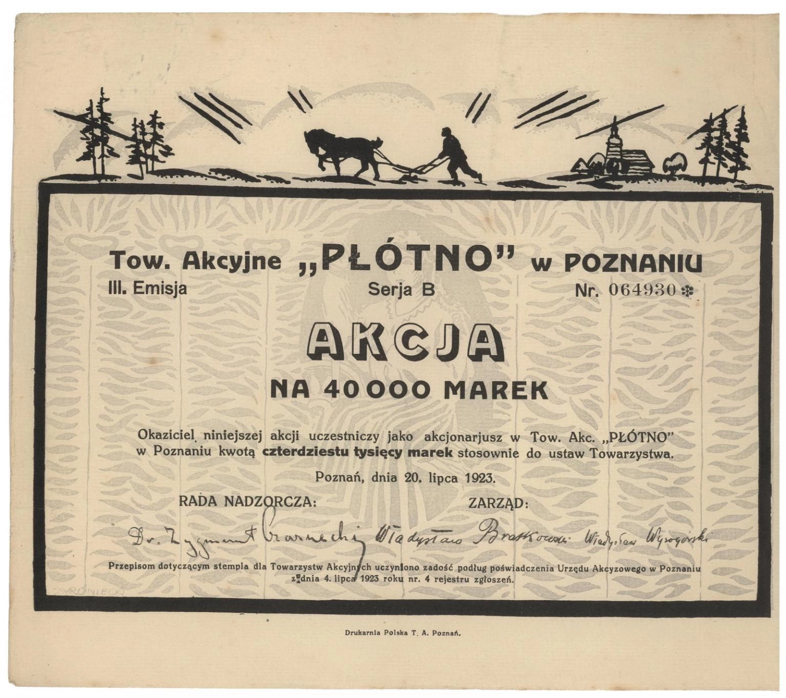 Towarzystwo Akcyjne "Płótno" w Poznaniu