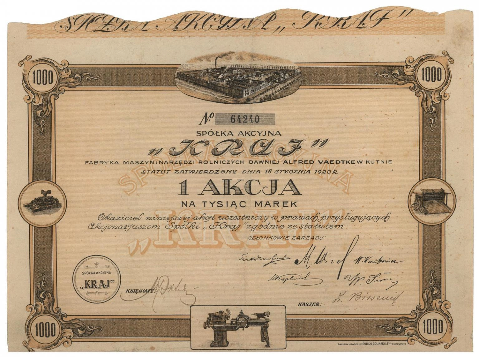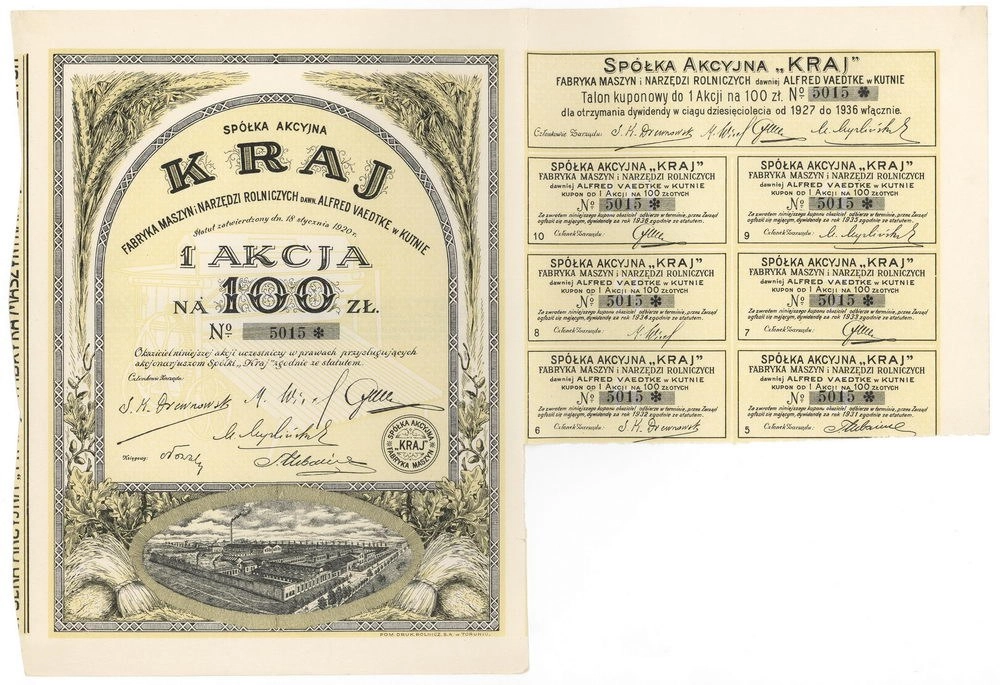 "Kraj" Fabryka Maszyn i Narzędzi Rolniczych dawniej Alfred Vaedtke w Kutnie Spółka Akcyjna