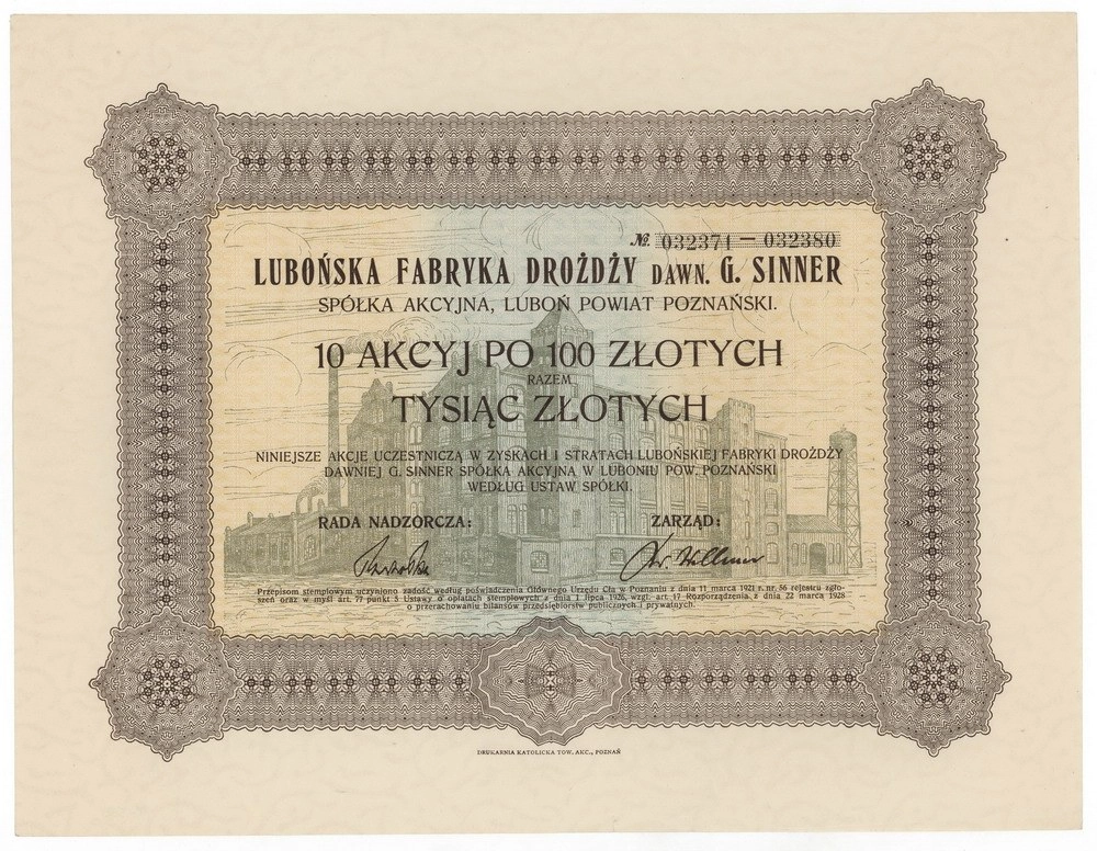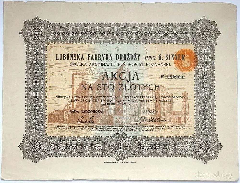 Lubońska Fabryka Drożdży dawniej "G. Sinner" Spółka Akcyjna