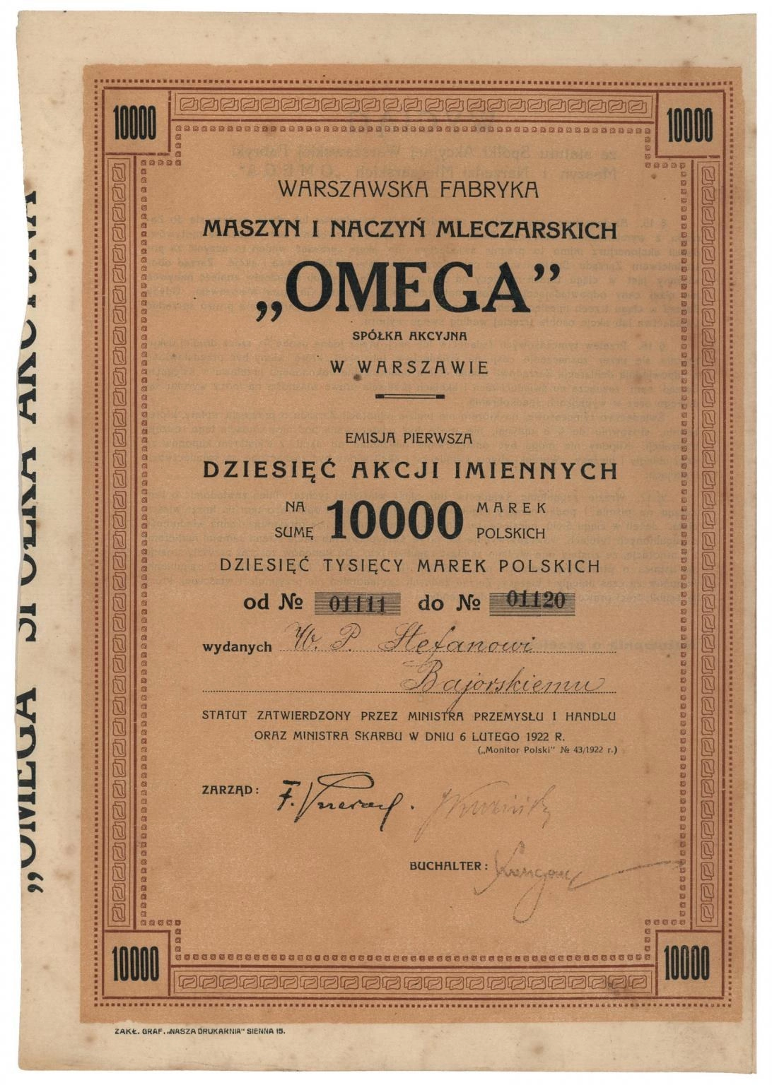 Warszawska Fabryka Maszyn i Naczyń Mleczarskich "Omega" Spółka Akcyjna