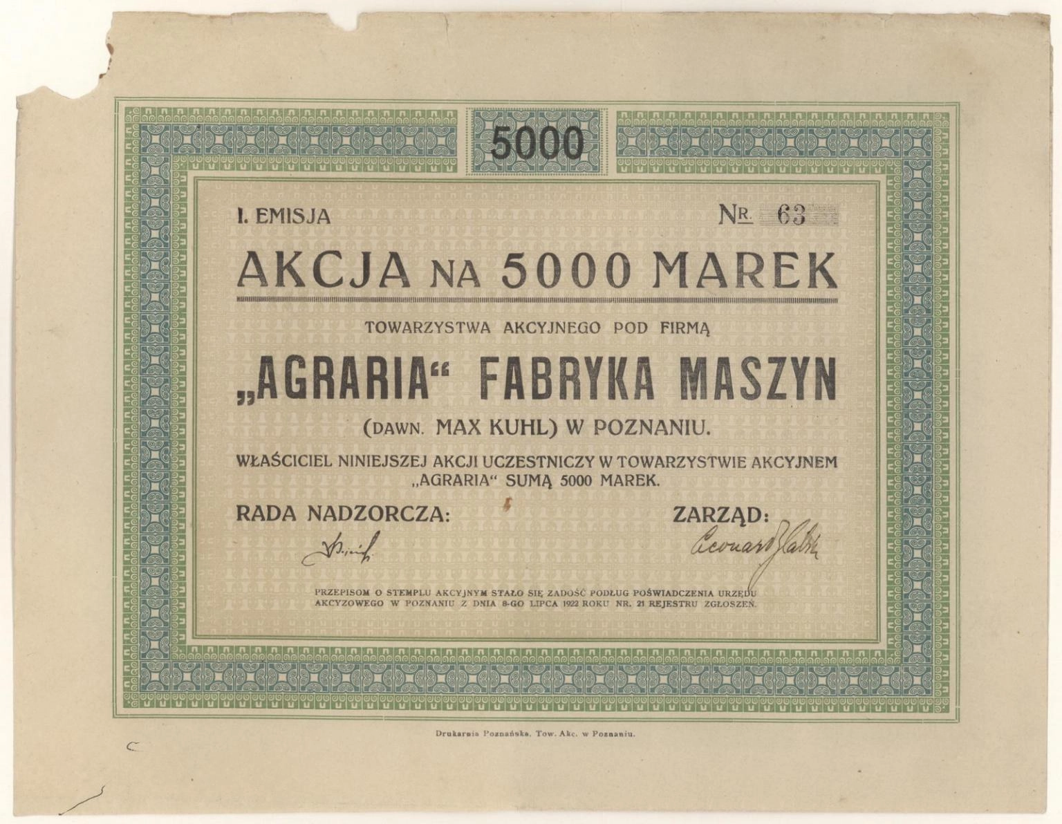 "Agraria" Fabryka Maszyn Towarzystwo Akcyjne (dawniej "Max Kuhl") w Poznaniu