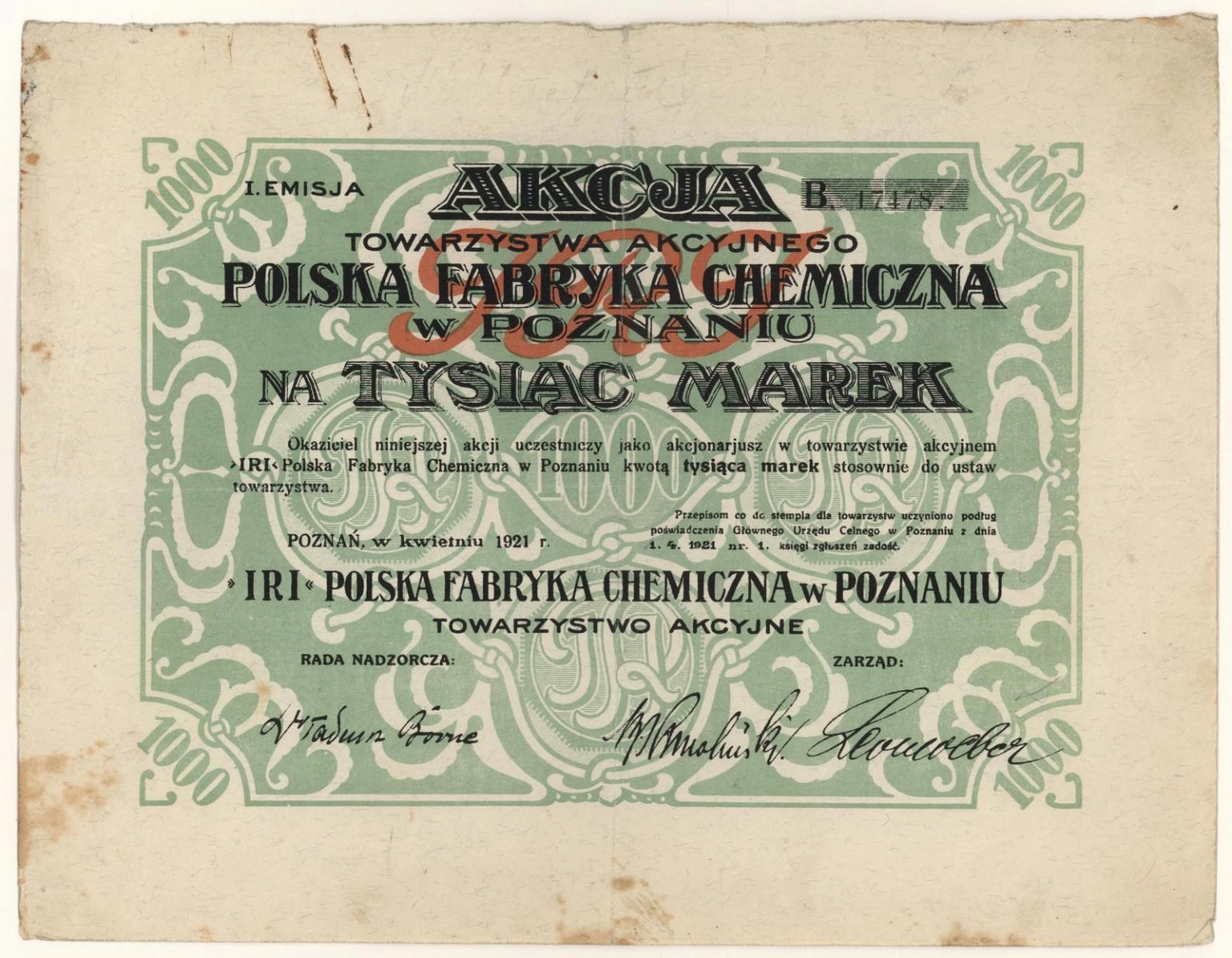 "Iri" Polska Fabryka Chemiczna w Poznaniu Towarzystwo Akcyjne