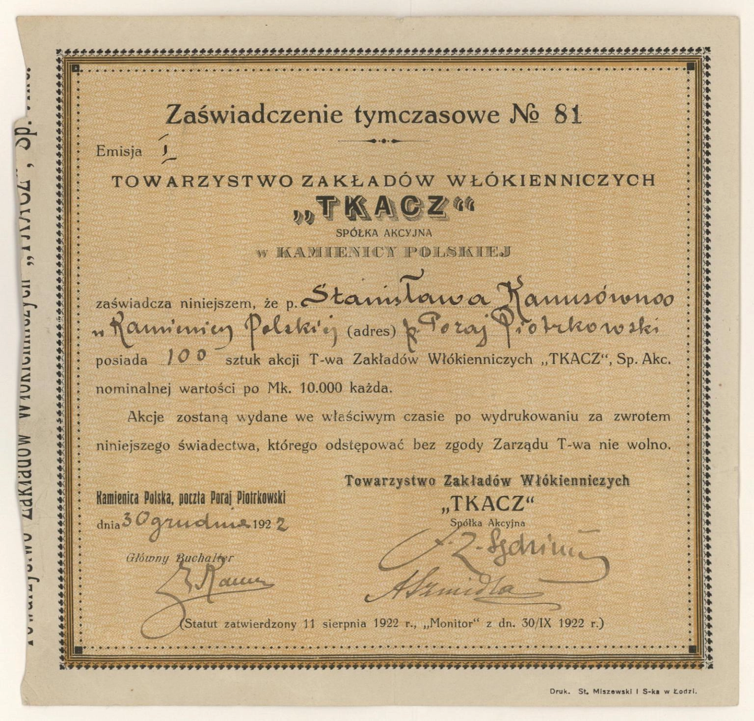 Kamienica Polska, 30.12.1922