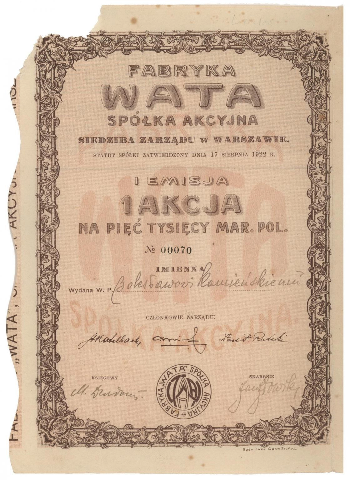 Akcja | Emisja I | imienna
