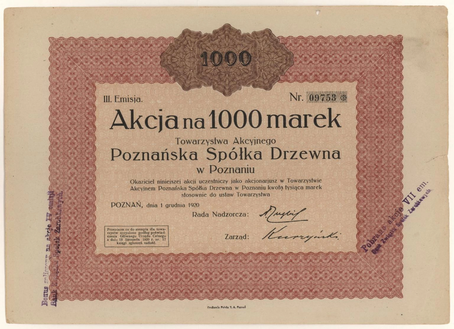 Poznańska Spółka Drzewna w Poznaniu, Spółka Akcyjna