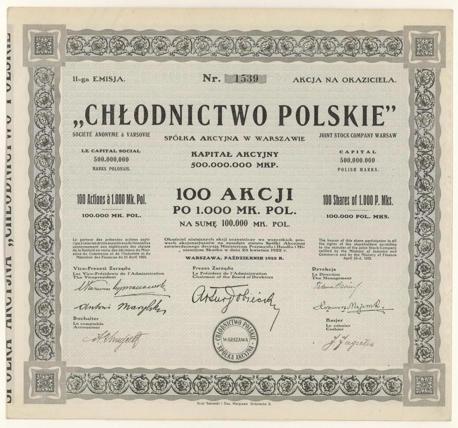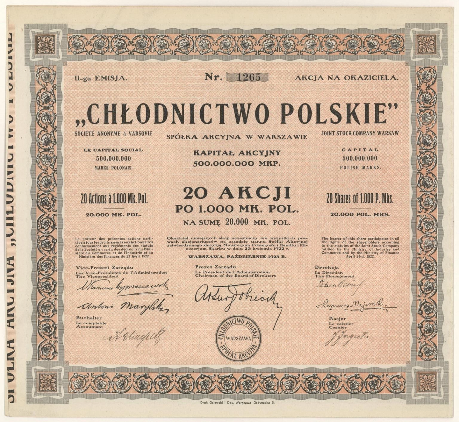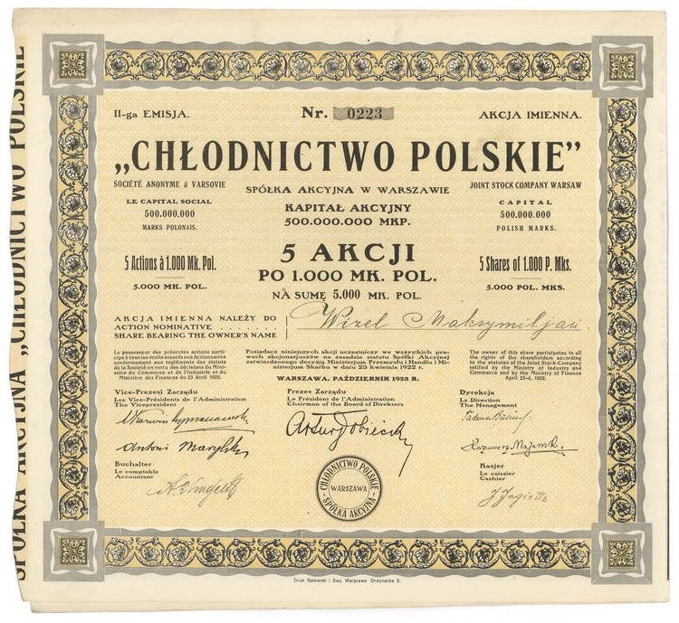 "Chłodnictwo Polskie" Spółka Akcyjna w Warszawie