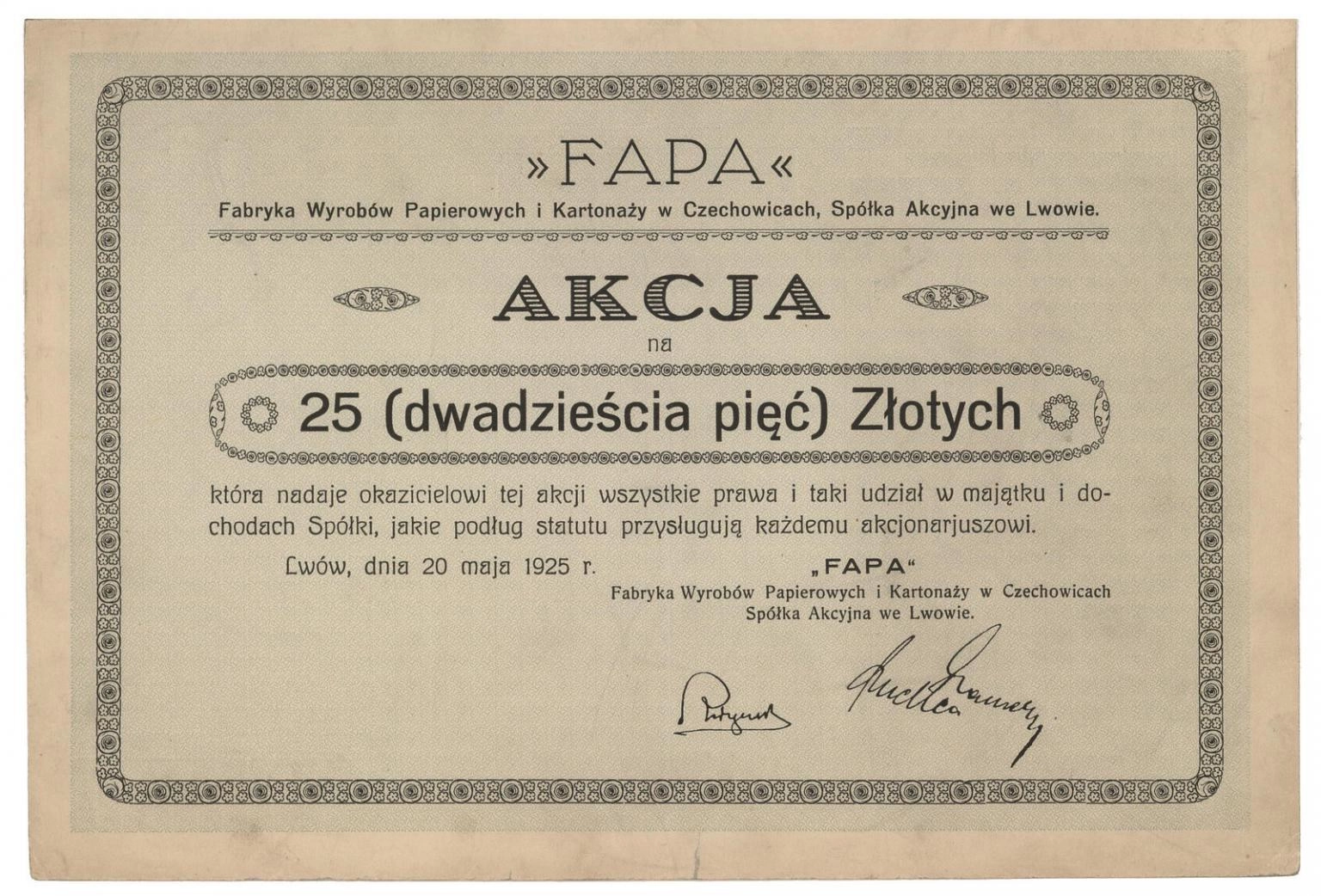 "Fapa" Fabryka Wyrobów Papierowych i Kartonaży w Czechowicach, Spółka Akcyjna we Lwowie