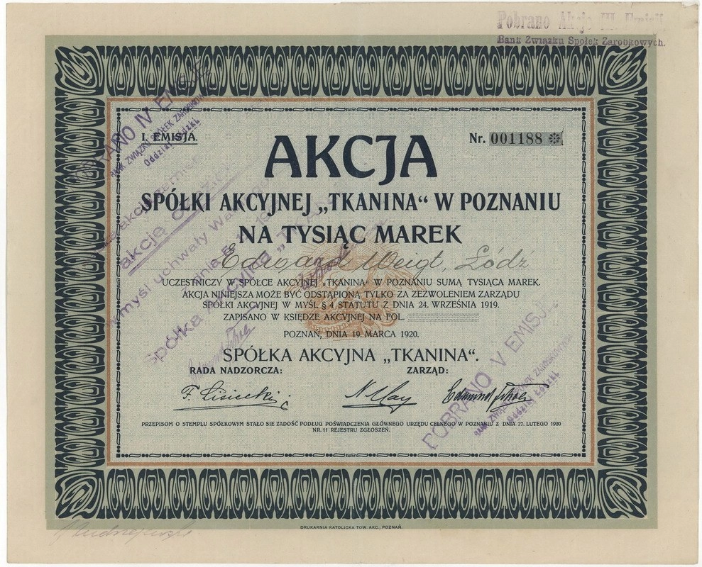"Tkanina" Spółka Akcyjna w Poznaniu