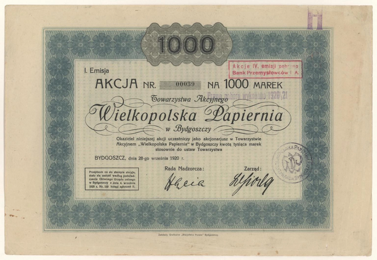 Akcja | Emisja I | na okaziciela