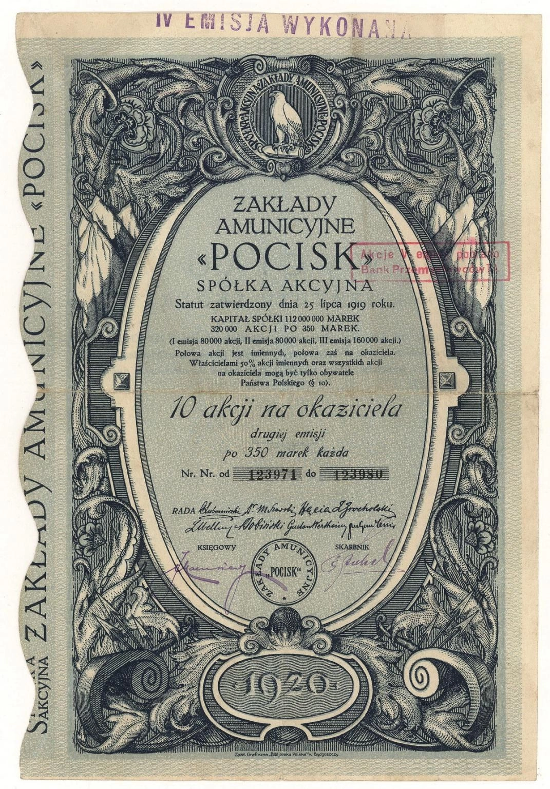 Akcja | Emisja I | imienna - zmieniona na okaziciela