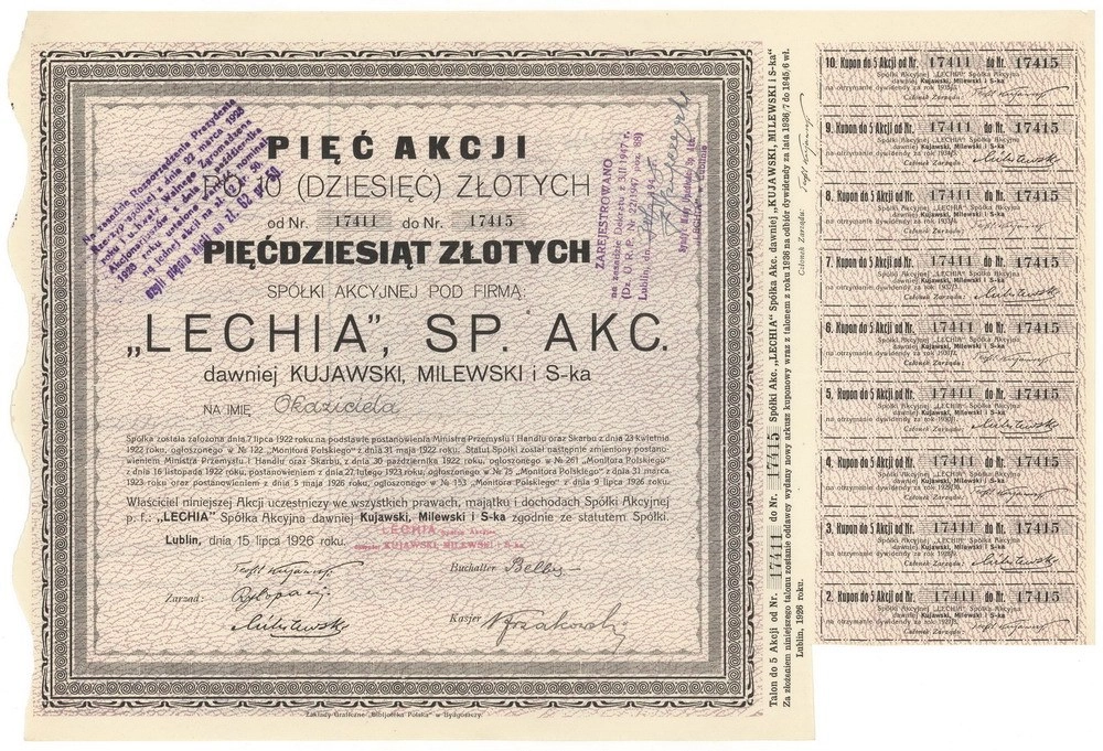 "Lechia" dawniej "Kujawski, Milewski i S-ka" Spółka Akcyjna
