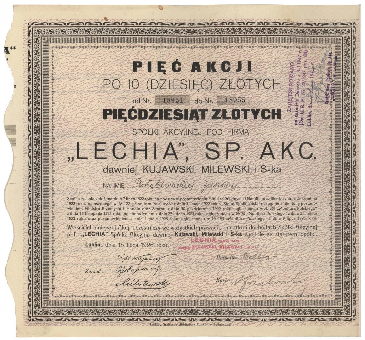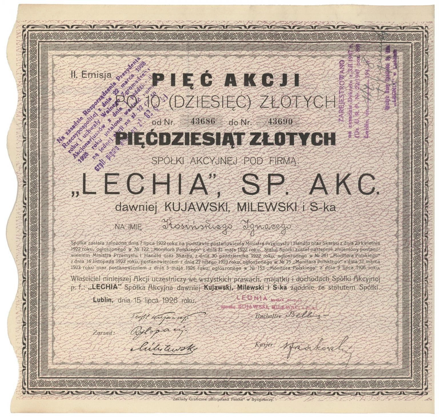 "Lechia" dawniej "Kujawski, Milewski i S-ka" Spółka Akcyjna