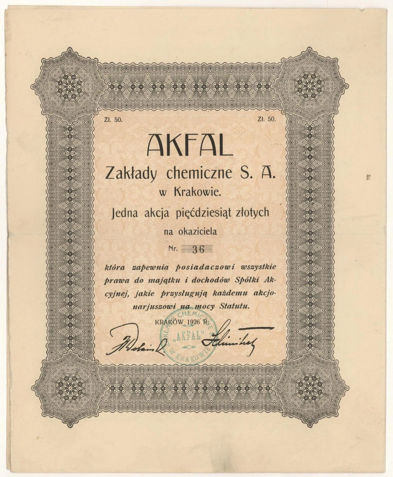 "Akfal" Zakłady Chemiczne Spółka Akcyjna w Krakowie