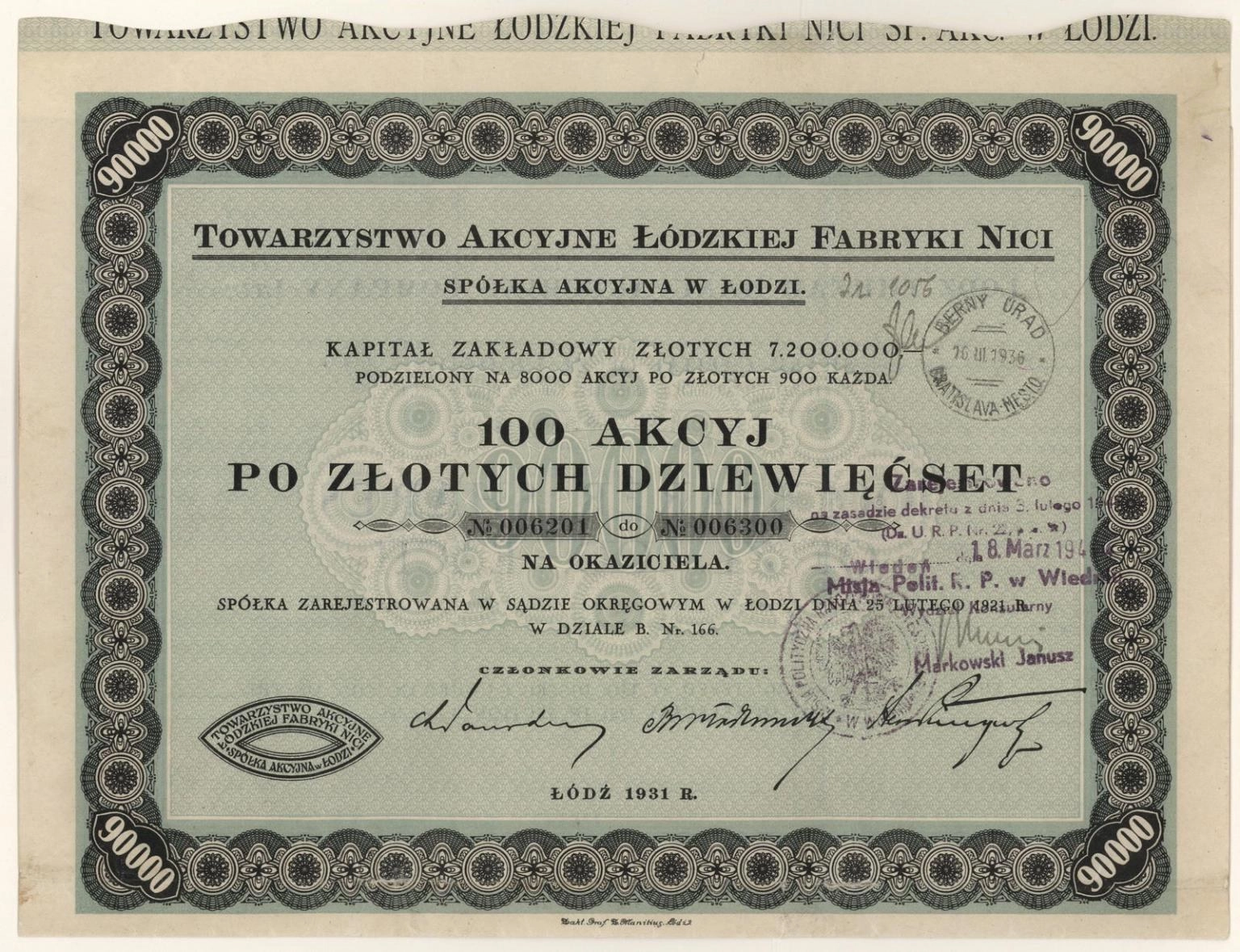 Towarzystwo Akcyjne Łódzkiej Fabryki Nici Spółka Akcyjna w Łodzi